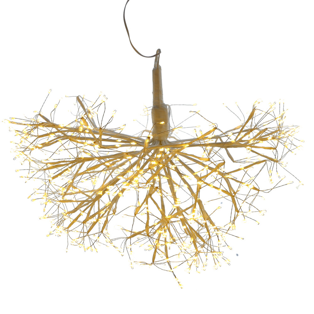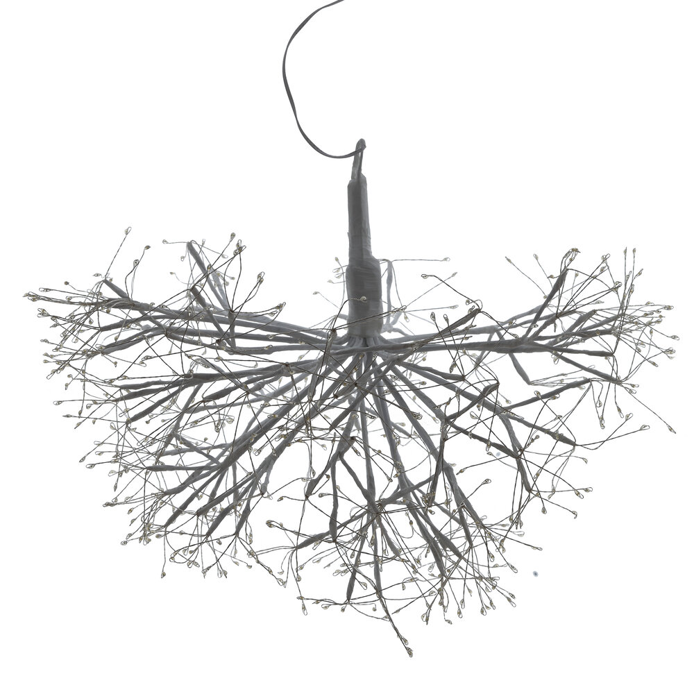 Декоративное изделие с подсветкой «Шар» — выразительный акцент для современного интерьера. Сферическая конструкция выполнена из полимерных материалов и металла, окрашена в белый цвет. Множество крошечных огоньков образуют воздушный объем, похожий на одуванчик или искрящийся салют, наполняя пространство мягким, уютным сиянием. Такой светящийся шар гармонично смотрится над камином, в гостиной, спальне или зоне праздников, легко сочетается с классическим и современным декором. Прочный, легкий и эстетичный, он становится центральным элементом композиции, создавая атмосферу тепла и торжества в любое время года. Мягкая подсветка идеальна для вечеров, фотозон, праздничного декора и повседневной атмосферы спокойствия. Гибкие ветви можно аккуратно расправить. Изделие подвешивается за специальную петельку. Размер: L45 W45 H45 см. Материалы: полимерные материалы, металл. Цвет: белый. Ветки: 24 шт. Светодиоды: 576 шт. Свет: белый теплый (постоянное свечение). Длина шнура: 5 м. Степень защиты (IP): IP 44. Тип питания: от сети.