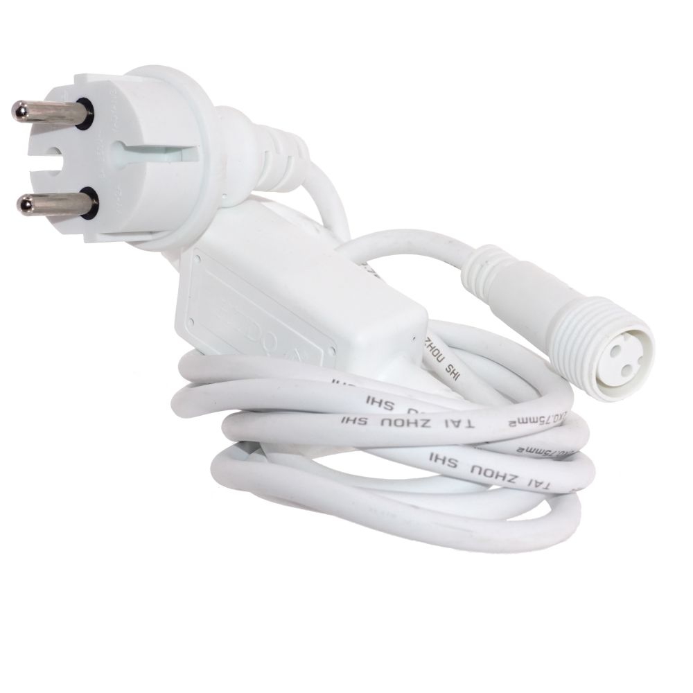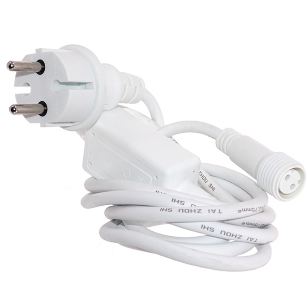 Шнур с адаптером и вилкой для уличной гирлянды. Длина провода: 1,5 м. Материал: каучук, белого цвета. Степень влагозащиты: IP44. Предназначен для использования на улице.