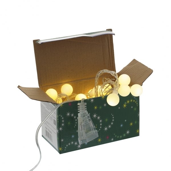 Электрогирлянда комнатная "Шарик", длина 3,9 м, свет белый, 1 режим свечения, 220V, шнур прозрачный 1,0 м, степень влагозащиты: IP20. Подходит для использования только в помещении.
