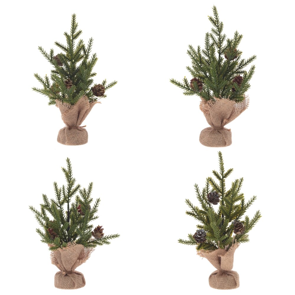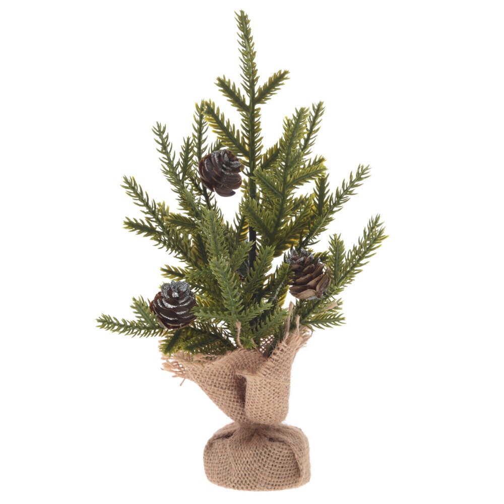 Декоративное изделие в виде маленькой елочки с шишками придаст вашему интерьеру природный шарм. Основание декорировано холщовой материей. Это миниатюрное рождественское украшение создаст атмосферу уюта и волшебства в вашем доме. Разместить его можно на камине, полке, столе или подоконнике, придавая интерьеру праздничный вид. Представлено в четырех вариантах.