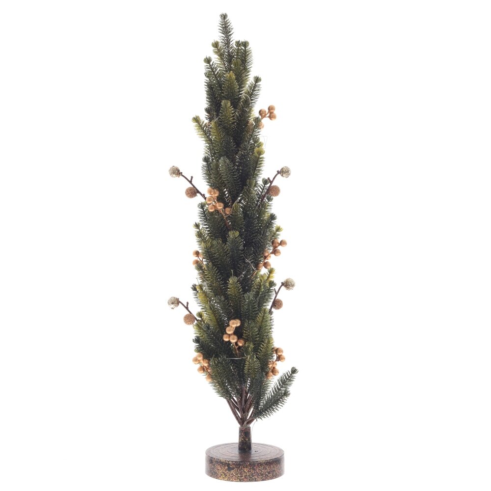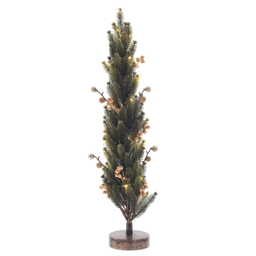 Декоративное изделие с подсветкой "Елка" – это изящная искусственная елочка, установленная на круглой подставке. Елка украшена веточками с золотыми ягодами, что создает праздничное настроение. Она дополнена гирляндой с мягким теплым светом, что придаёт интерьеру уют и атмосферу праздника. Это изделие работает от трех батареек типа AA (в комплект не входят), что позволяет легко размещать елочку в любом месте. Идеально подходит для новогодних декораций в доме или офисе.