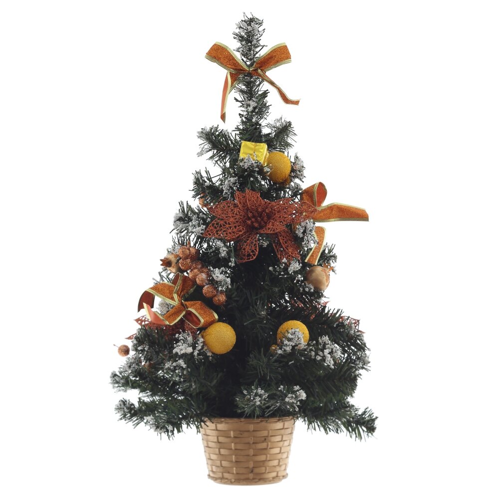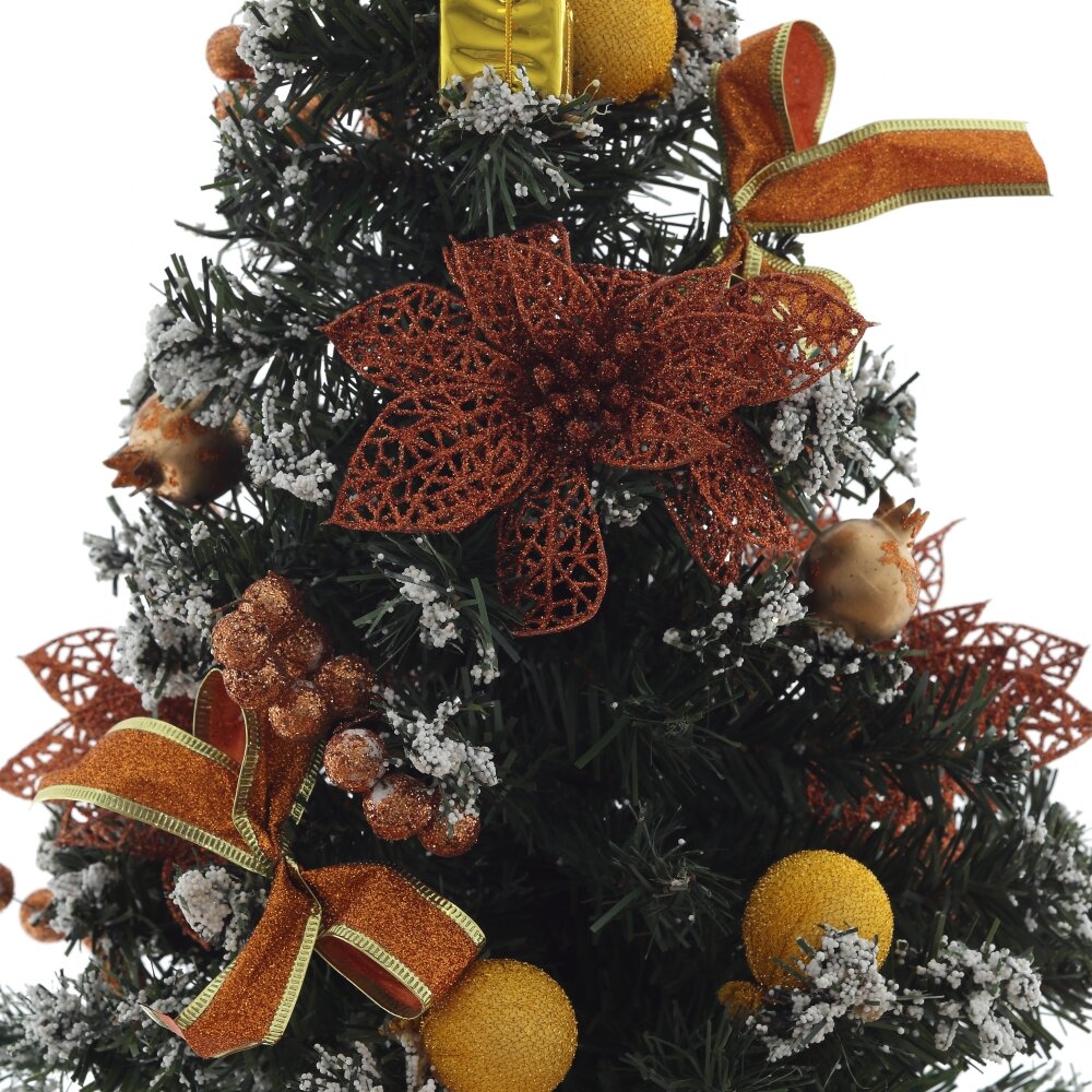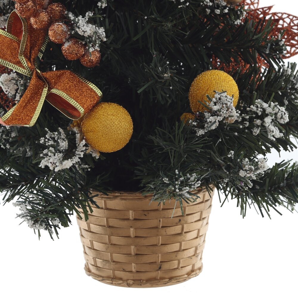 Елка искусственная в устойчивом кашпо. Украшена игрушками цветами и бантами. Елка не требует сборки. Просто распушите ветки и лесная красавица украсит ваш интерьер к празднику.