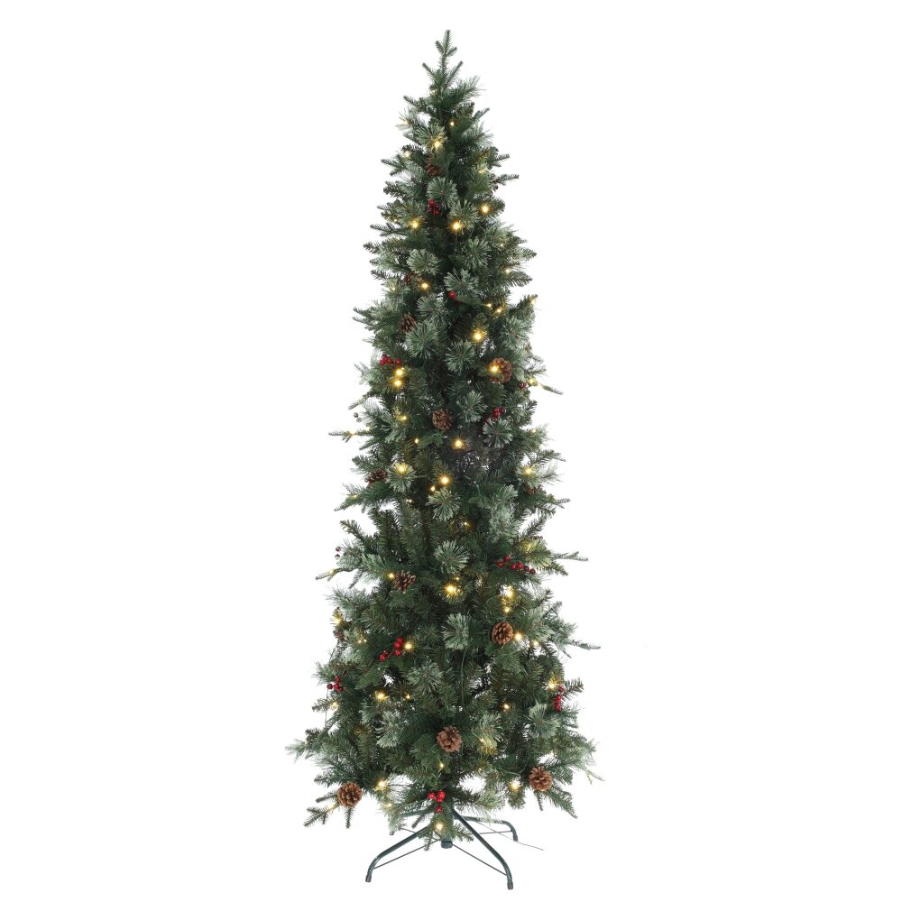 Ёлка искусств с подсвет (шишки+ягоды), D70 H210 см, 300 LED, тепл бел, 8 реж, от сети, провод 2,1м