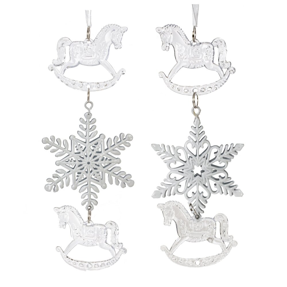 Украшение новогоднеe подвеска"Снежинка с лошадками", L6,5 W1 H19 см, 2в.