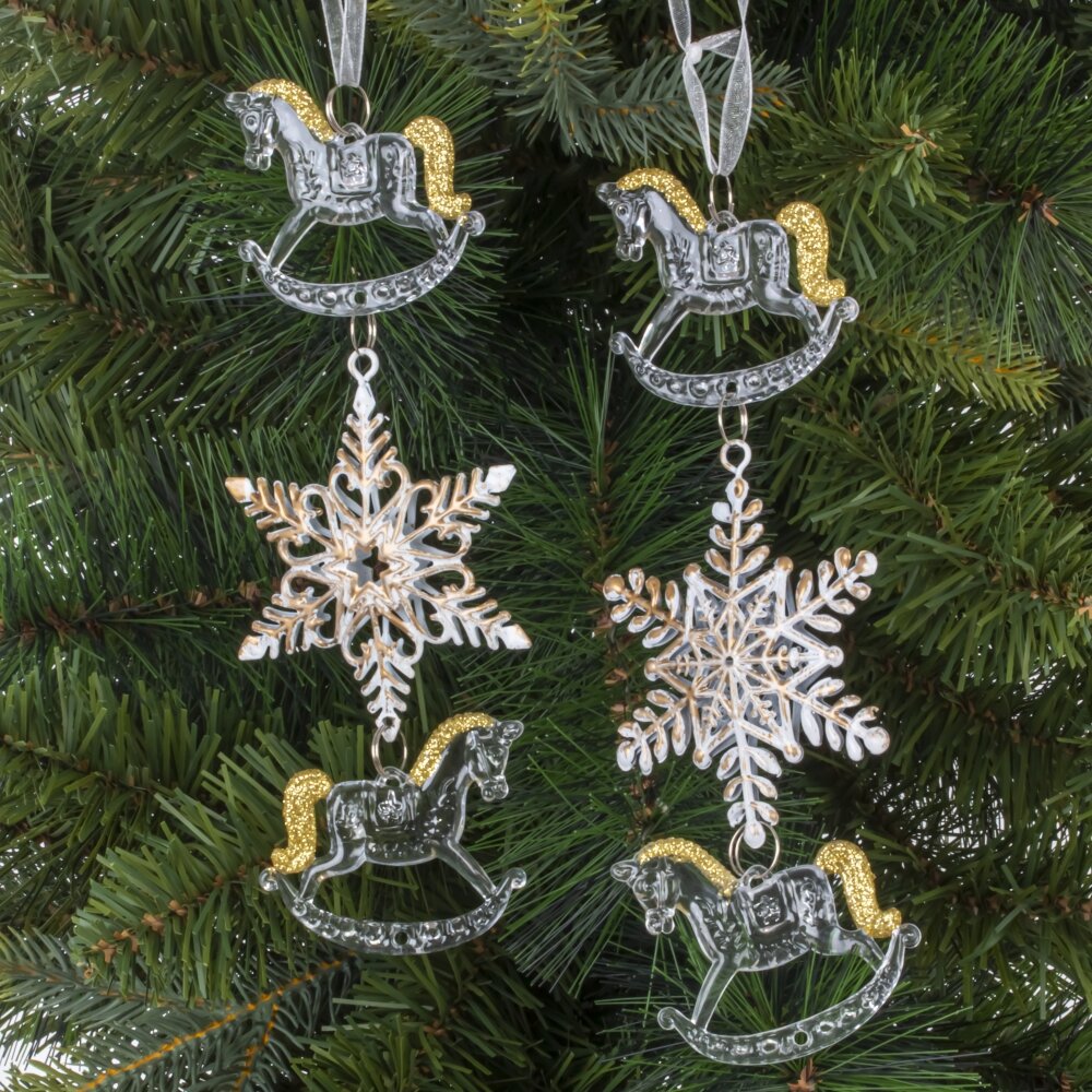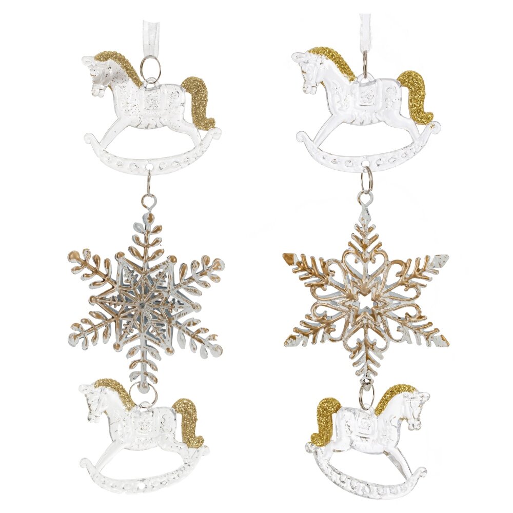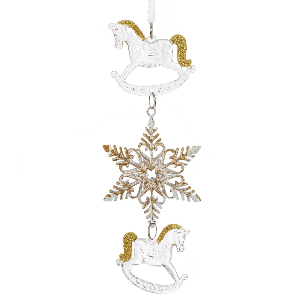 Украшение новогоднеe подвеска"Снежинка с лошадками", L6,5 W1 H19 см, 2в.