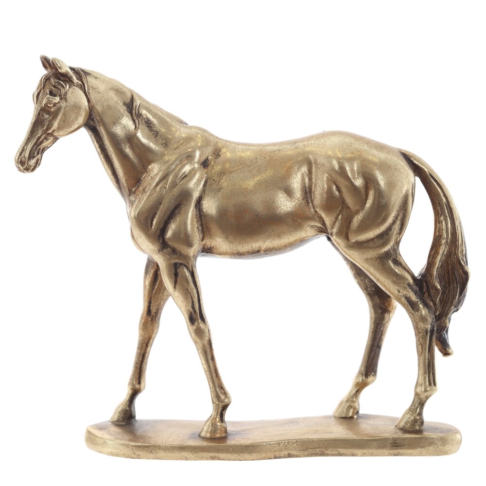 Декоративная фигурка лошади — это утончённый элемент интерьера, сочетающий в себе изящество форм и символику силы, грации и свободы. Выполненная из прочных полимерных материалов, фигурка окрашена в золотой цвет. Такая фигурка станет отличным дополнением к интерьеру в классическом или современном стиле, подчеркнёт вкус владельца и добавит нотку утончённости в любое пространство. Идеальна как самостоятельный декоративный акцент на полке, камине или в витрине, а также как подарок, символизирующий стремление вперёд, успех и внутреннюю силу. Благодаря высокому качеству исполнения и гармоничному сочетанию цветов, эта фигурка будет долго радовать глаз и вдохновлять.