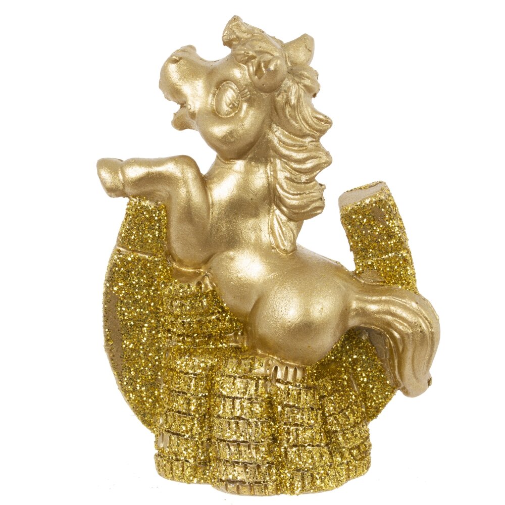 Декоративная фигурка "Лошадка с подковой" — стильный и символичный элемент декора, который станет прекрасным подарком к Новому году или талисманом на удачу. Выполненная из прочного полимерного материала и окрашенная в изысканный золотой цвет, фигурка символизирует энергию, силу и процветание. Лошадка с подковой традиционно ассоциируется с удачей и успехом в делах. Идеально подойдёт для оформления интерьера дома или офиса, а также станет оригинальным дополнением к новогодней композиции. Этот стильный сувенир будет радовать вас и ваших близких весь год. Фигурка представлена в двух видах.