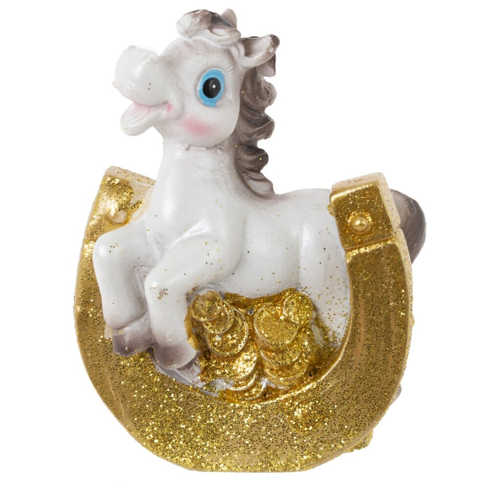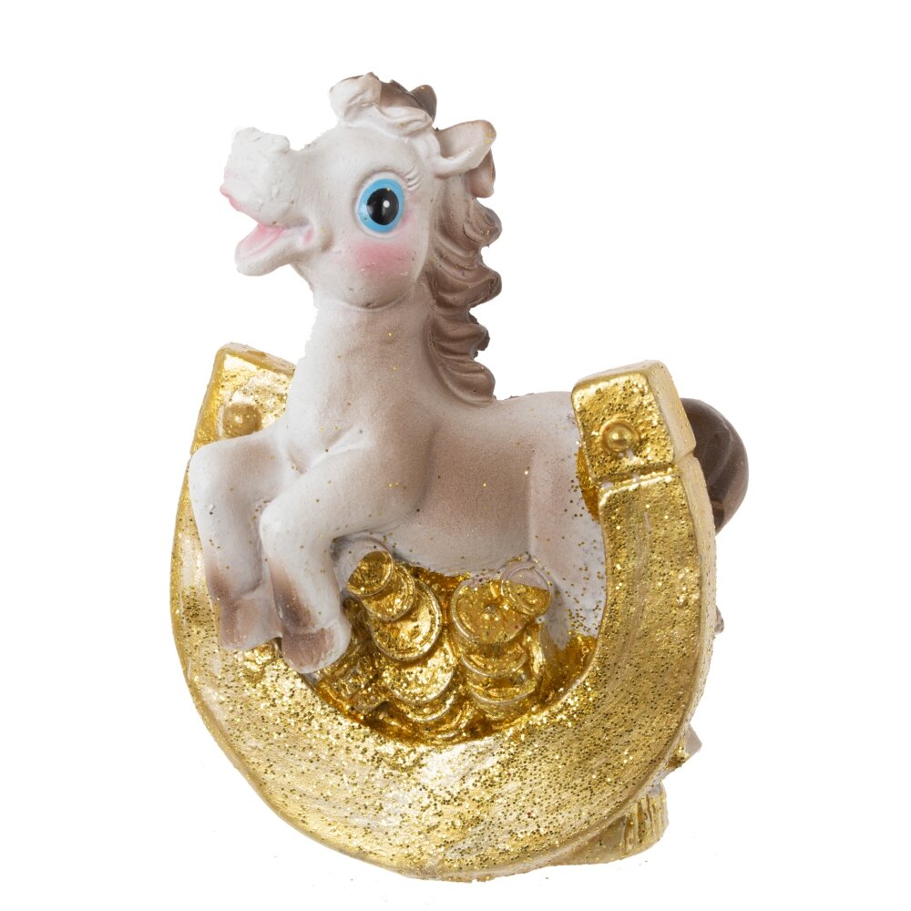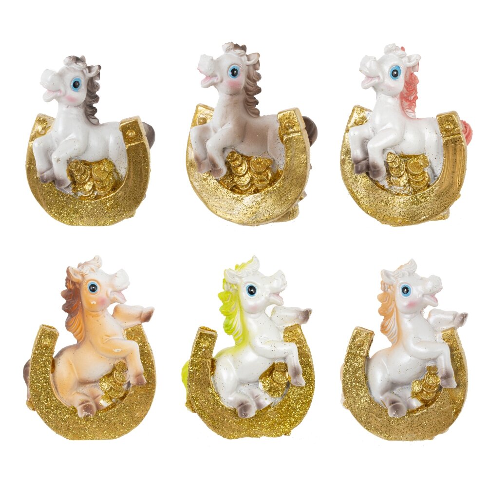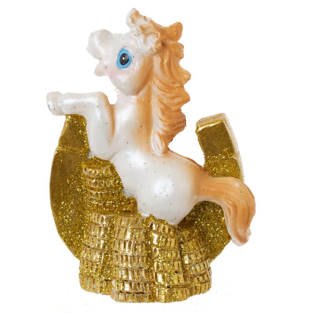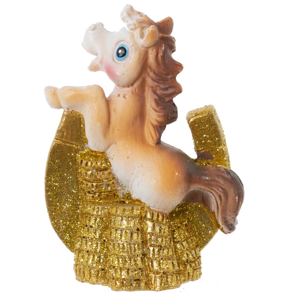 Декоративная фигурка "Лошадка с подковой" — стильный и символичный элемент декора, который станет прекрасным подарком к Новому году или талисманом на удачу. Выполненная из прочного полимерного материала, фигурка символизирует энергию, силу и процветание. Лошадка с подковой традиционно ассоциируется с удачей и успехом в делах. Идеально подойдёт для оформления интерьера дома или офиса, а также станет оригинальным дополнением к новогодней композиции. Этот стильный сувенир будет радовать вас и ваших близких весь год. Фигурка представлена в 6 видах.