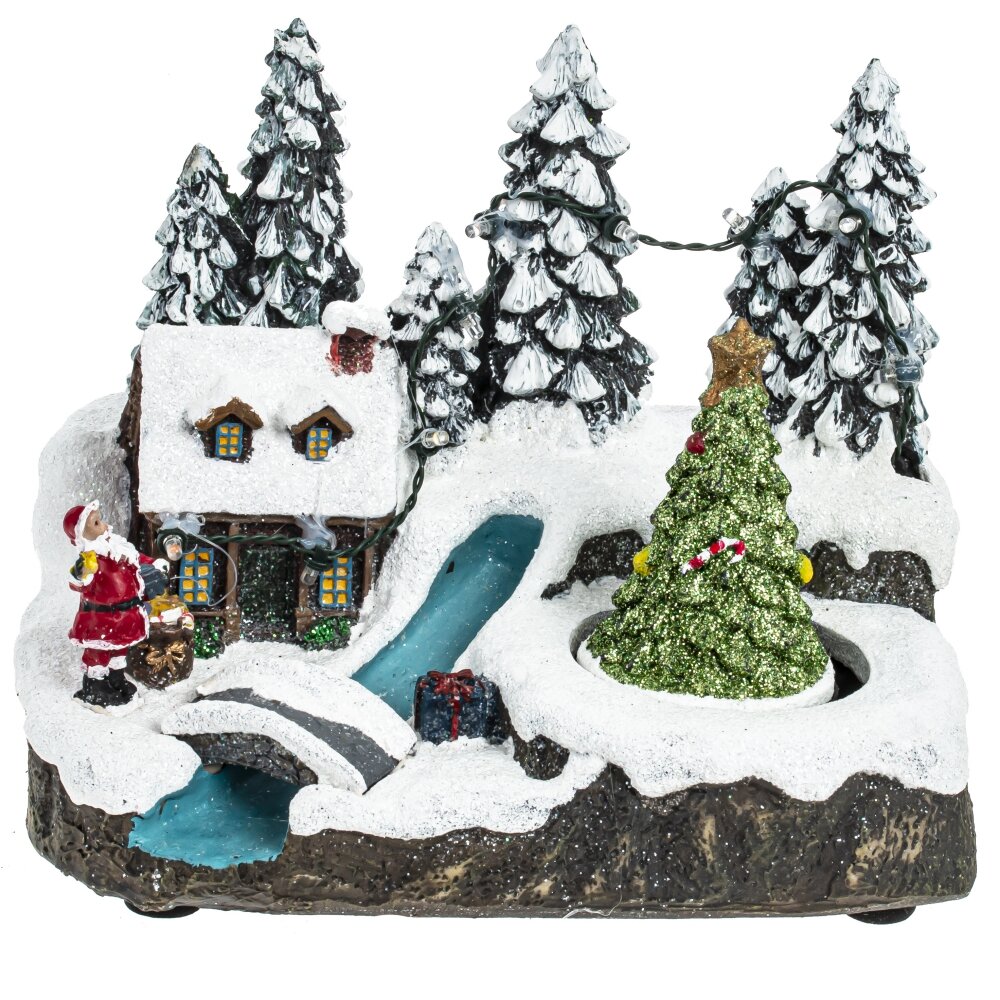 Веселые огоньки, забавный домик, елки и Санта. Хотите, чтобы наступающий год был ярким, полным веселых чудес? Тогда эта оригинальная миниатюра для вас. Фигурка с подсветкой и функцией движения. Работает от трех батареек АА (не прилагаются). Шнур питания Кабель USB 100 см входит в комплект.