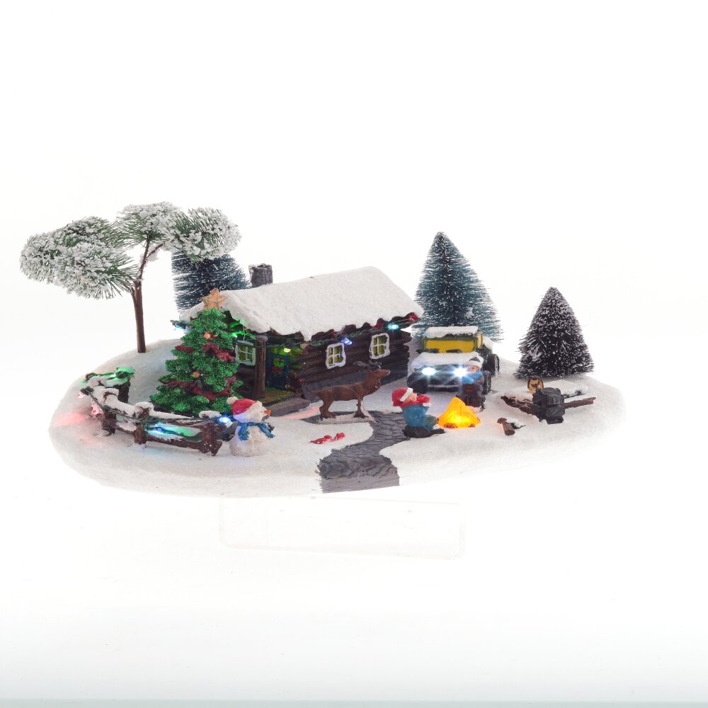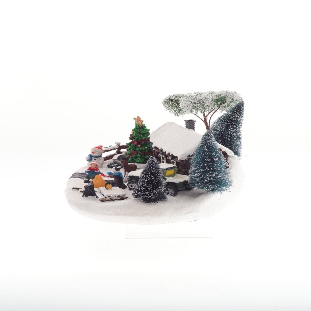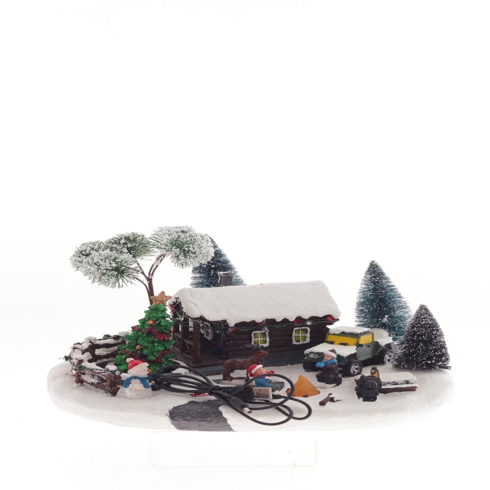 Веселые огоньки, забавный домик, елки и снеговик. Хотите, чтобы наступающий год был ярким, полным веселых чудес? Тогда эта оригинальная миниатюра для вас. Фигурка музыкальная, с подсветкой и функцией движения. Работает от трех батареек АА (не прилагаются). Шнур питания Кабель USB 100.5 см входит в комплект.