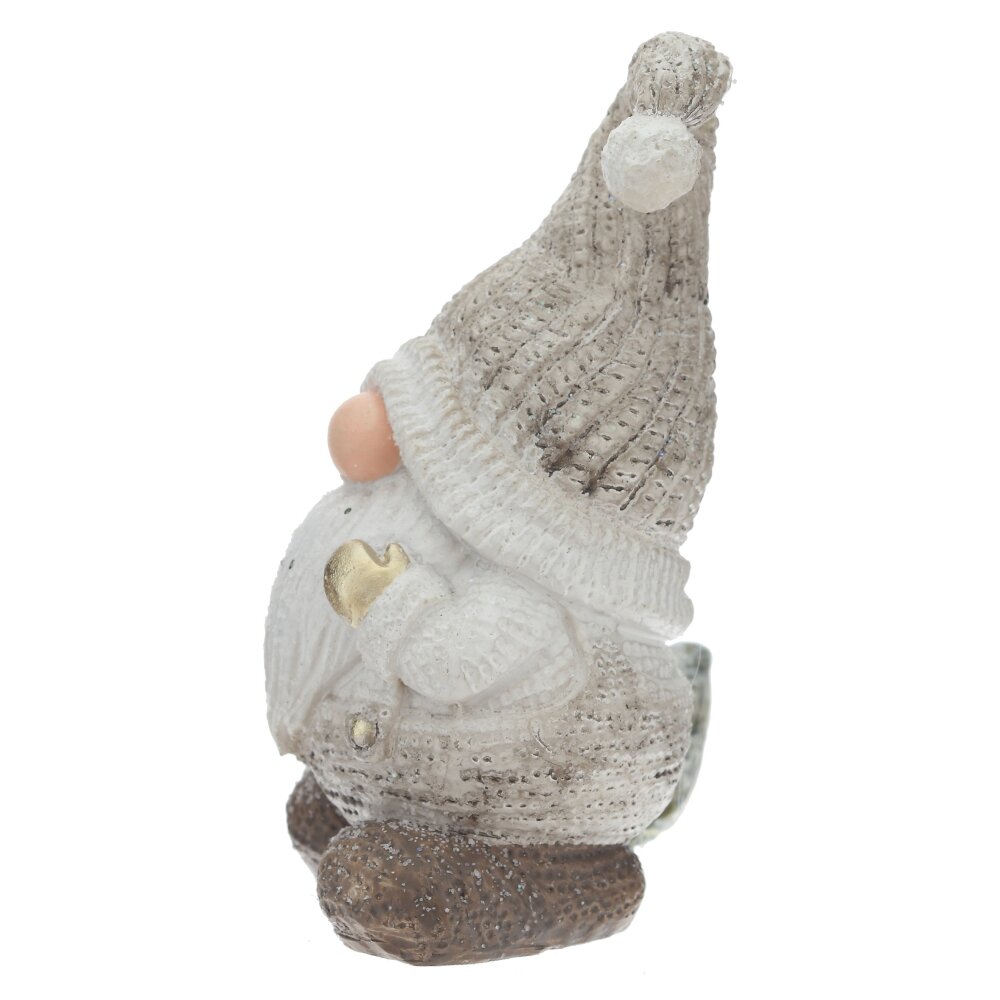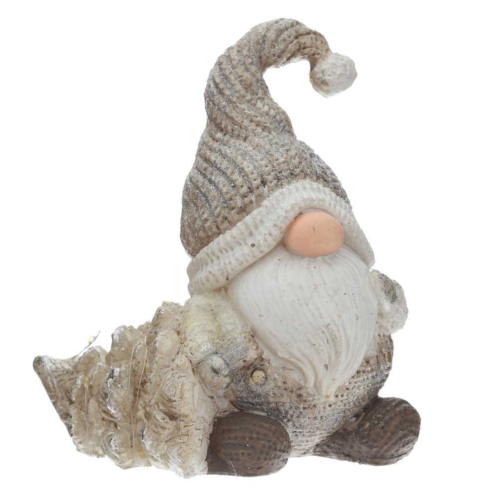Декоративная фигурка "Гном" — это очаровательный элемент новогоднего декора, выполненный в нежных бежевых тонах. Забавный гном с длинной бородой и высоким колпаком держит в руках елочки, создавая атмосферу уюта и волшебства. Детализация фигуры придаёт ей особую теплоту: мягкие линии, аккуратно проработанные складки одежды и добродушное выражение лица делают украшение особенно привлекательным. Такая фигурка станет гармоничным дополнением к новогоднему интерьеру, отлично впишется в композиции в стиле рустик, скандинав или классика. Подойдёт для украшения полок, камина, подоконника или праздничного стола, а также станет приятным сувениром для друзей и близких.