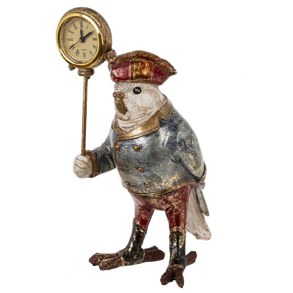 Фигурка декоративная с часами "Попугай" (LR44х1 н/п), L12 W13 H23 см