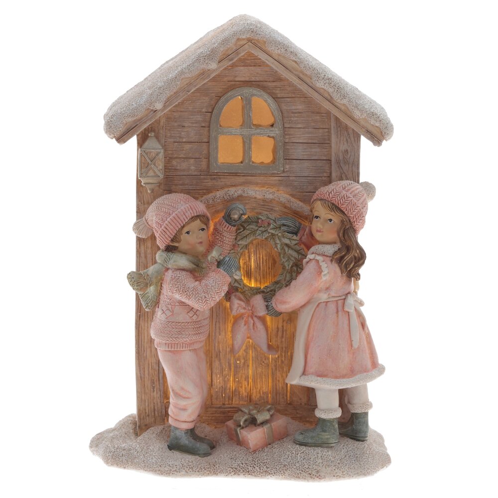 Фигурка декоративная с подсветкой "Дети и домик", L13 W10 H19 см