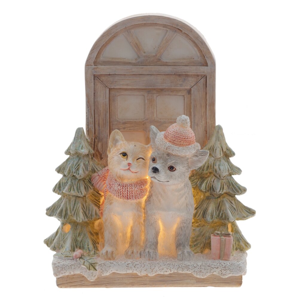 Фигурка декоративная с подсветкой "Кошечка и песик", L13 W8 H16 см