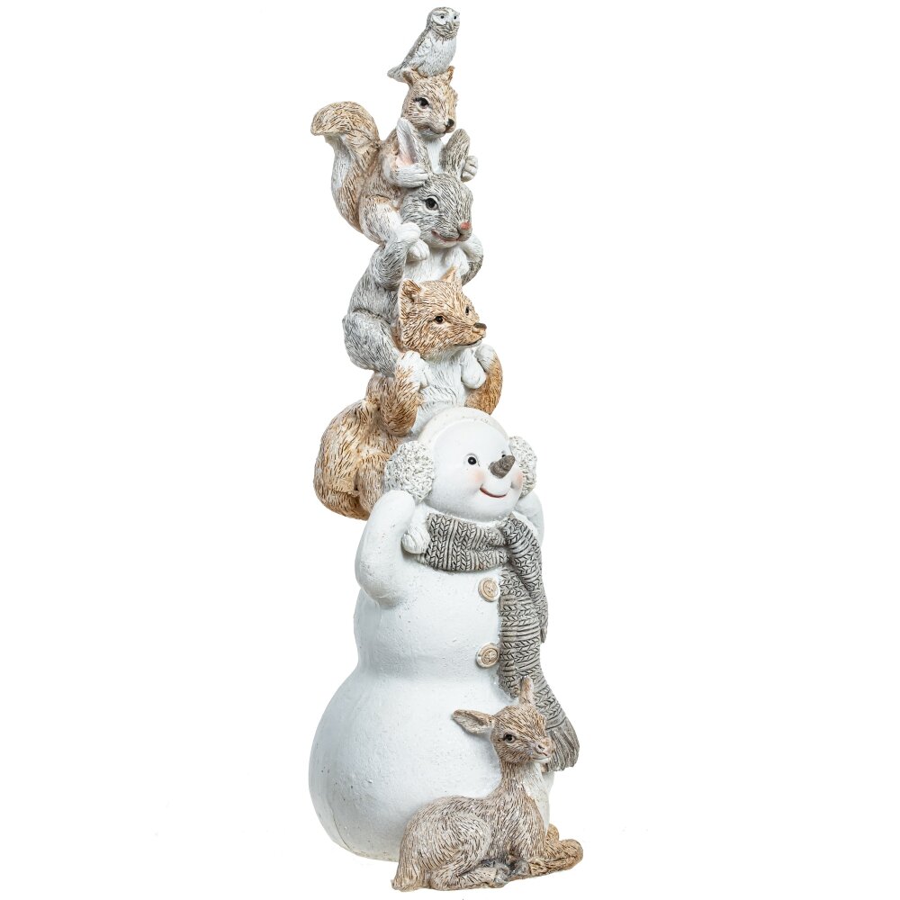 Милая фигурка Снеговика прекрасно впишется в любой интерьер. Украшение выполнено из полимерных материалов и прослужит вам ни один год. Каждое Рождество милый снеговик с лесными друзьями будет возвращаться, чтобы снова пригласить вас в новогоднюю сказку.
