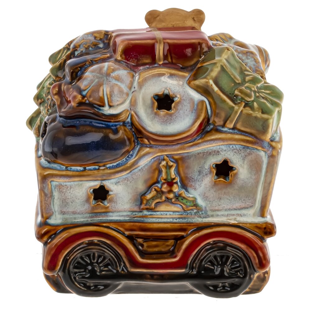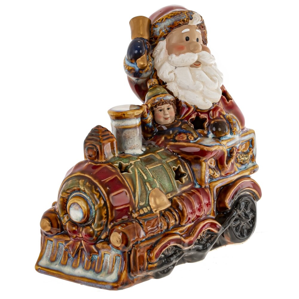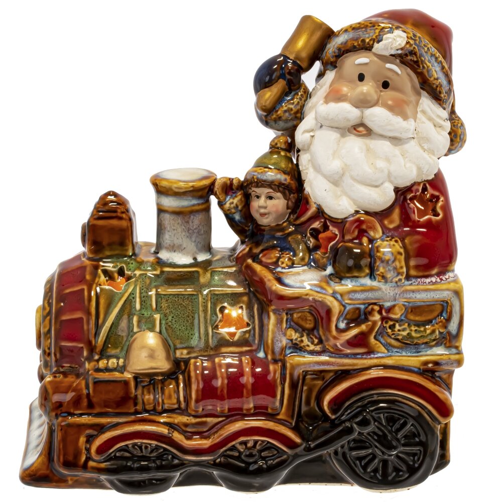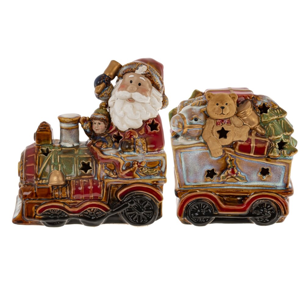 Набор из 2шт: Фигурка декор c подсветкой "Дед Мороз на поезде" (LR44x6), L26 W9 H15,5 см