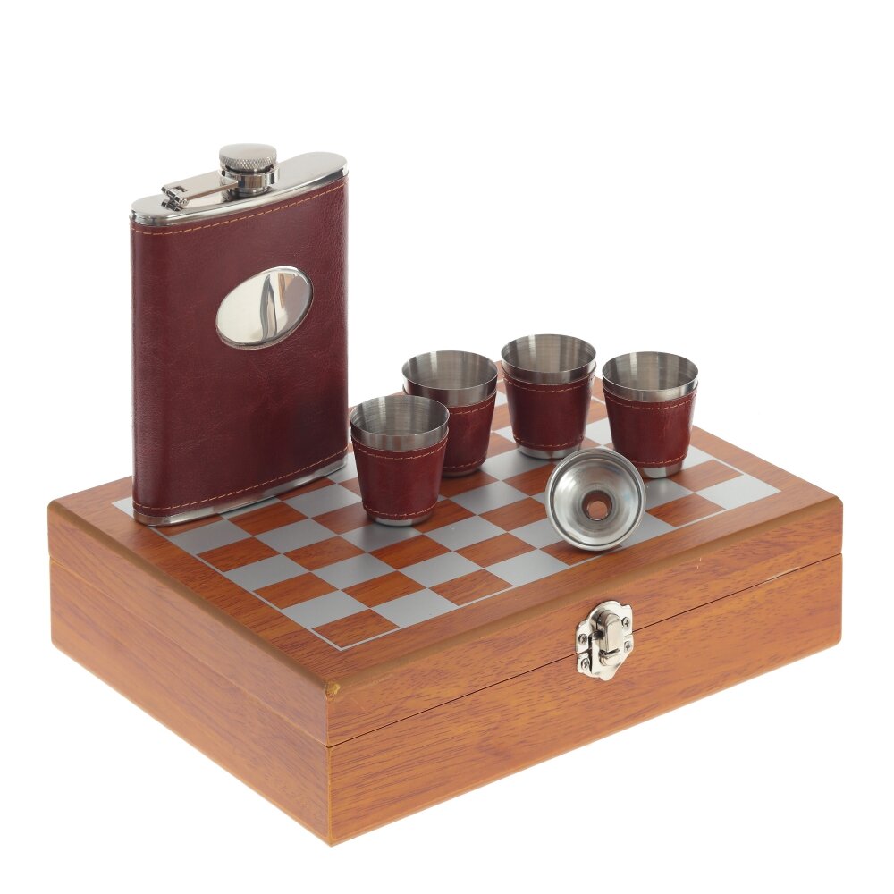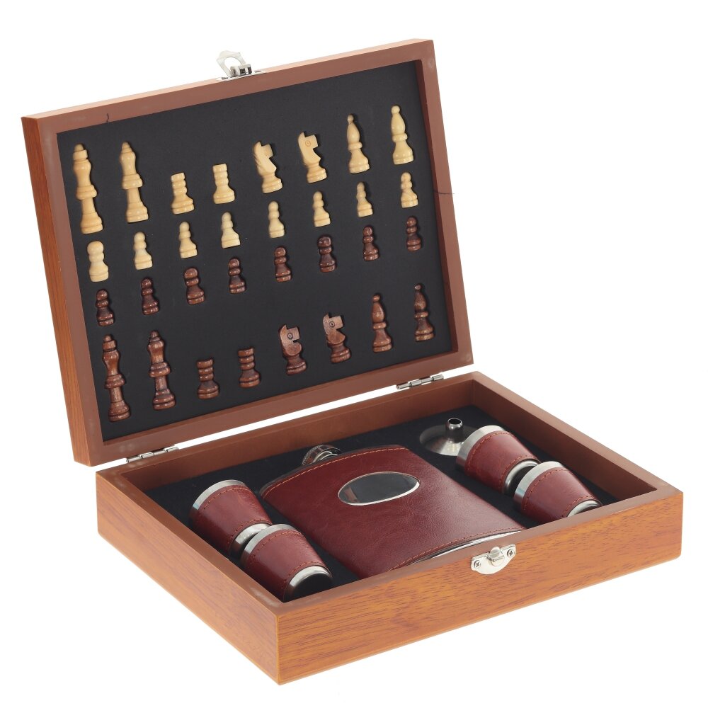 Набор подарочный (фляжка 220 мл, шахматы, воронка, 4 стопки 30 мл), L24 W18,5 H6 см