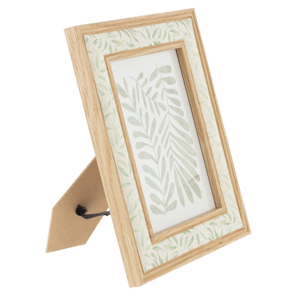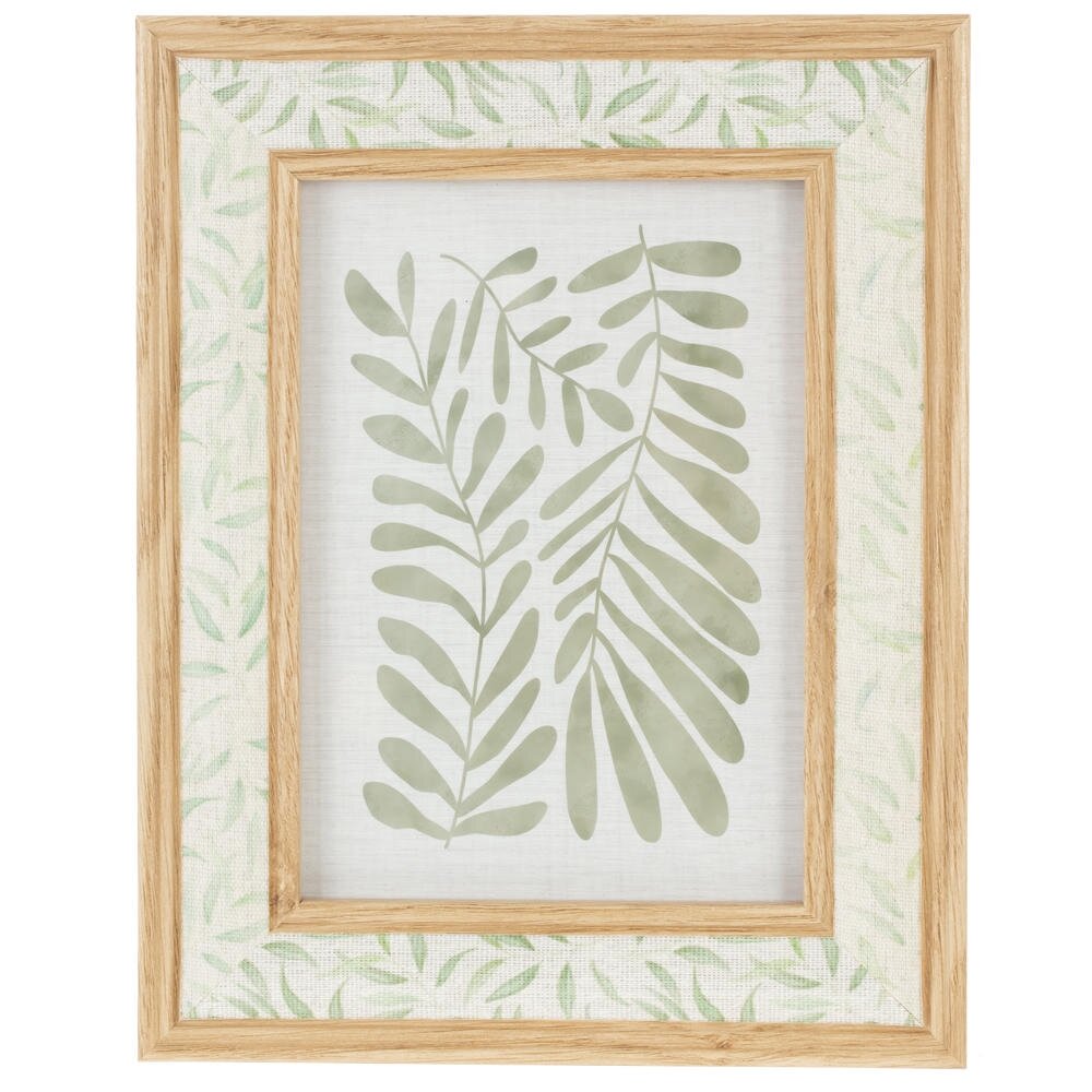 Элегантная фоторамка для фото 10?15 см — идеальное сочетание природной эстетики и современного дизайна. Основа выполнена из светлого дерева с натуральной текстурой, которая придаёт изделию теплоту и уют. Внутренняя часть украшена паспарту с нежным растительным орнаментом в светло-зелёных тонах, создающим гармоничный фон для фотографии. Центральный элемент дизайна — стилизованный рисунок зелёных листьев, выполненный в мягких, приглушённых оттенках. Прочное стекло надёжно защищает изображение от пыли и механических повреждений, а металлические крепления обеспечивают долговечность конструкции. Задняя часть рамки изготовлена из качественного картона, что делает изделие лёгким, но устойчивым. Эта фоторамка подойдёт для оформления семейных фотографий, памятных моментов или художественных принтов. Её лаконичный, но изысканный дизайн гармонично впишется в любой интерьер — от скандинавского до эко-стиля. Разместите её на полке, столе чтобы добавить в пространство нотку природной свежести и уюта. Превратите дорогие сердцу воспоминания в часть вашего домашнего декора!