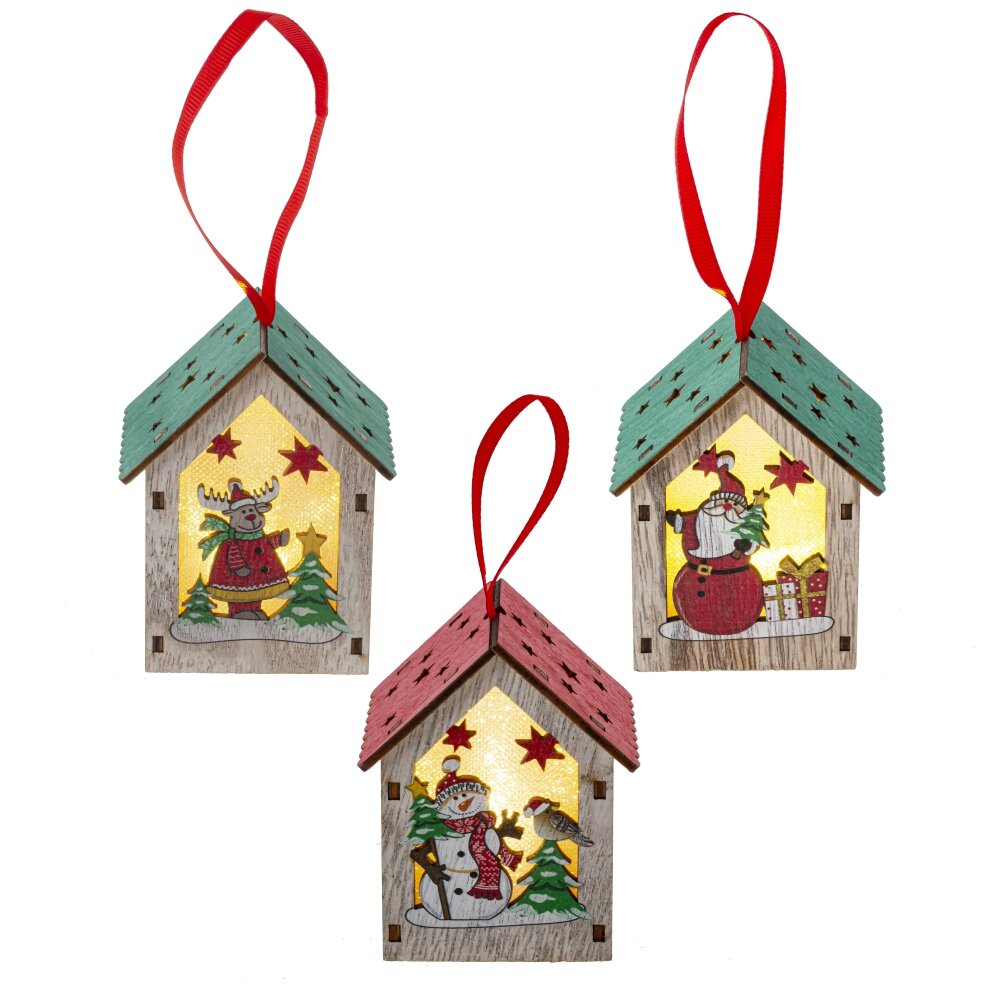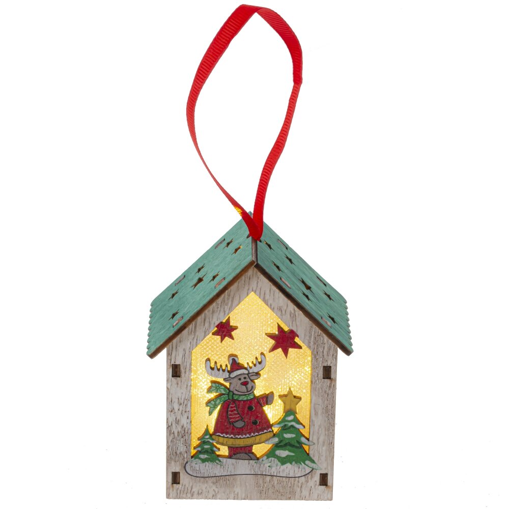 Изделие декоративное подвесное "Домик" с подсветкой (3хLR1130), L7 W5,5 H9 см, 3в.