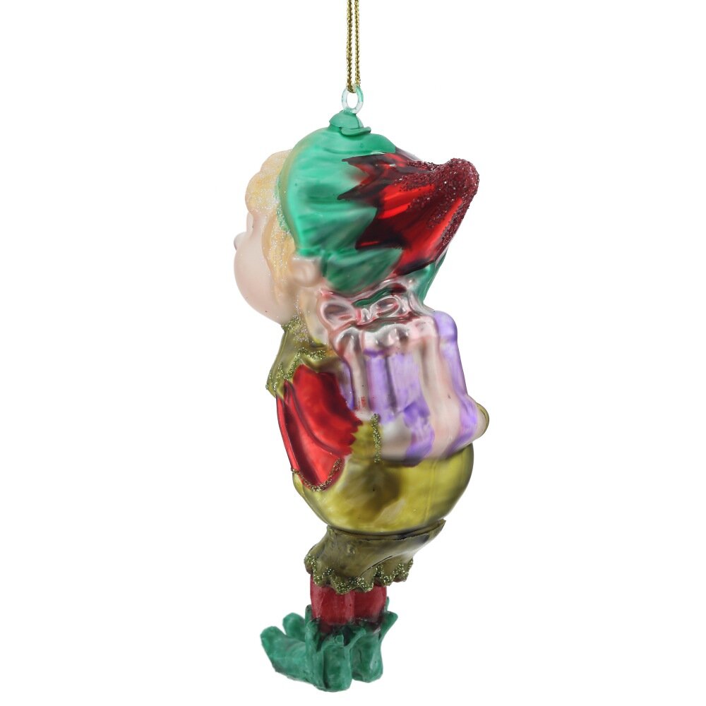 Яркое и оригинальное ёлочное украшение в виде эльфа, выполненное из стекла, станет ярким акцентом новогоднего декора. Фигурка привлекает внимание насыщенными цветами и детальной прорисовкой элементов — от выразительного лица до одежды с праздничными деталями. Лёгкое, но прочное стекло придаёт изделию утончённый блеск и воздушность. Такое украшение отлично смотрится как на классической, так и на тематической ёлке, создавая атмосферу волшебства и уюта. Идеально подходит для коллекционирования или в качестве необычного подарка к праздникам.