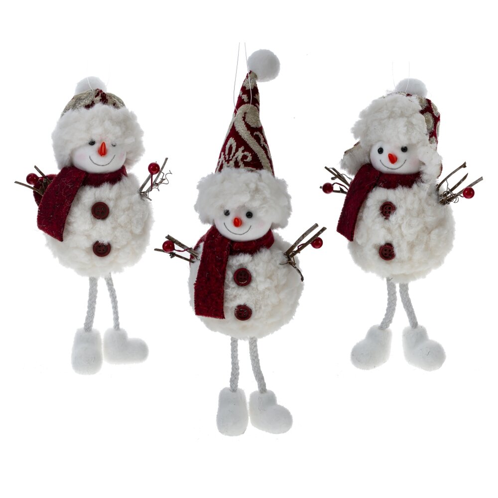 Декоративное подвесное изделие "Снеговик" – мягкая елочная игрушка, которая добавит уют и радость в ваш дом. Веселый, пушистый снеговик представлен в трех вариантах: в шапке, в колпаке и в ушанке. Яркие аксессуары и висячие ножки-шнурочки с ботиночками делают его еще более привлекательным. Отличный выбор для создания праздничной атмосферы!