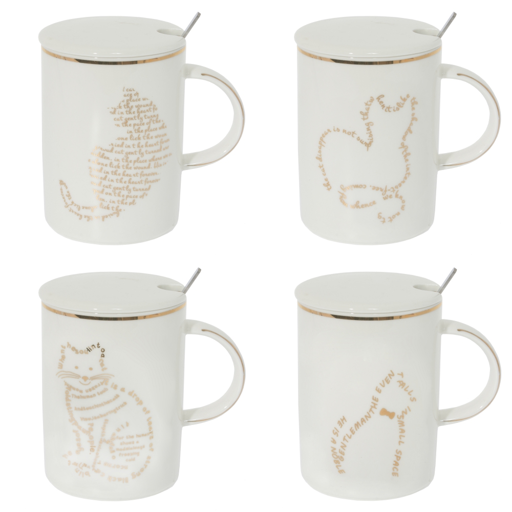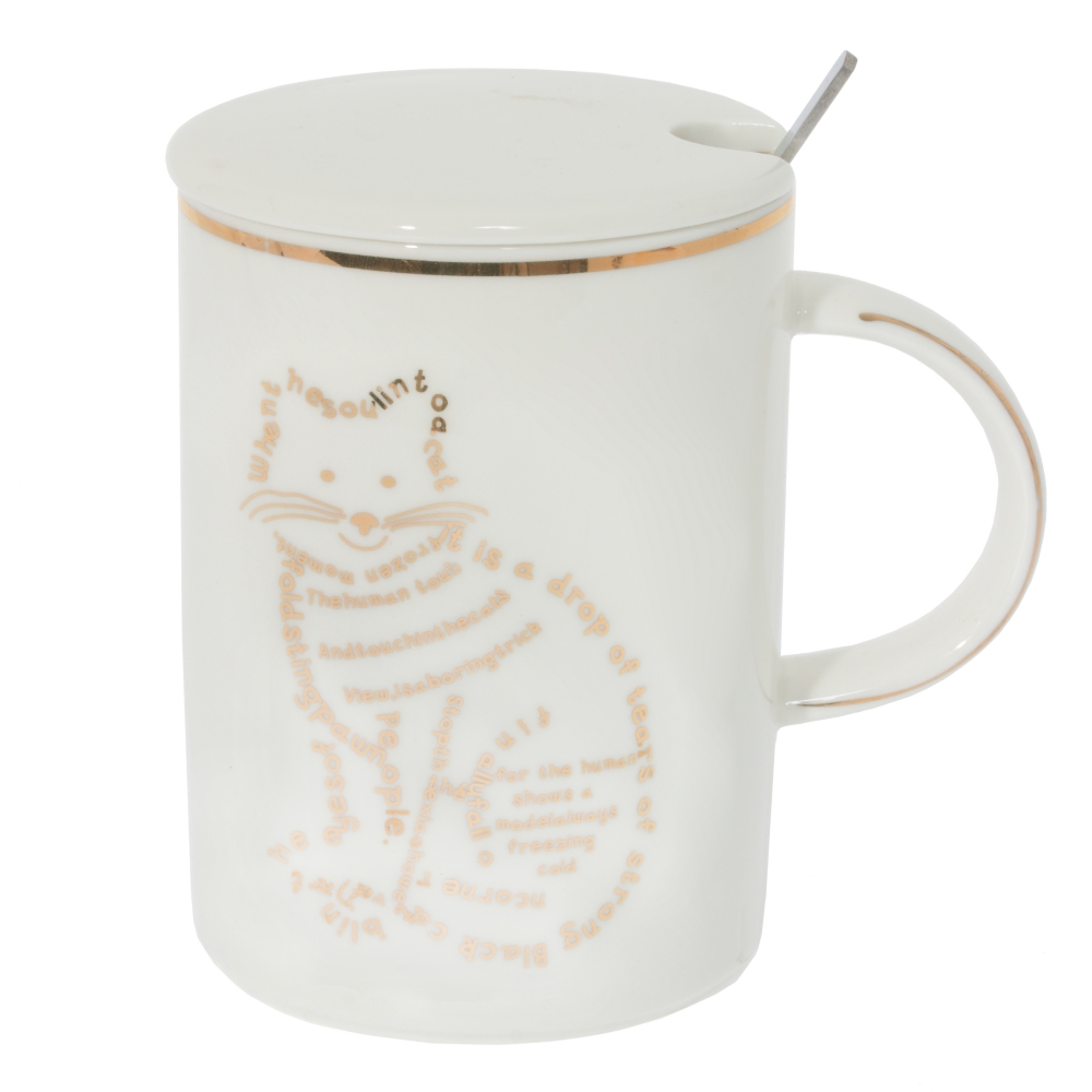 Кружка с крышкой и ложкой, 400 мл, L11,5 W8 H11,5 см, 4в.