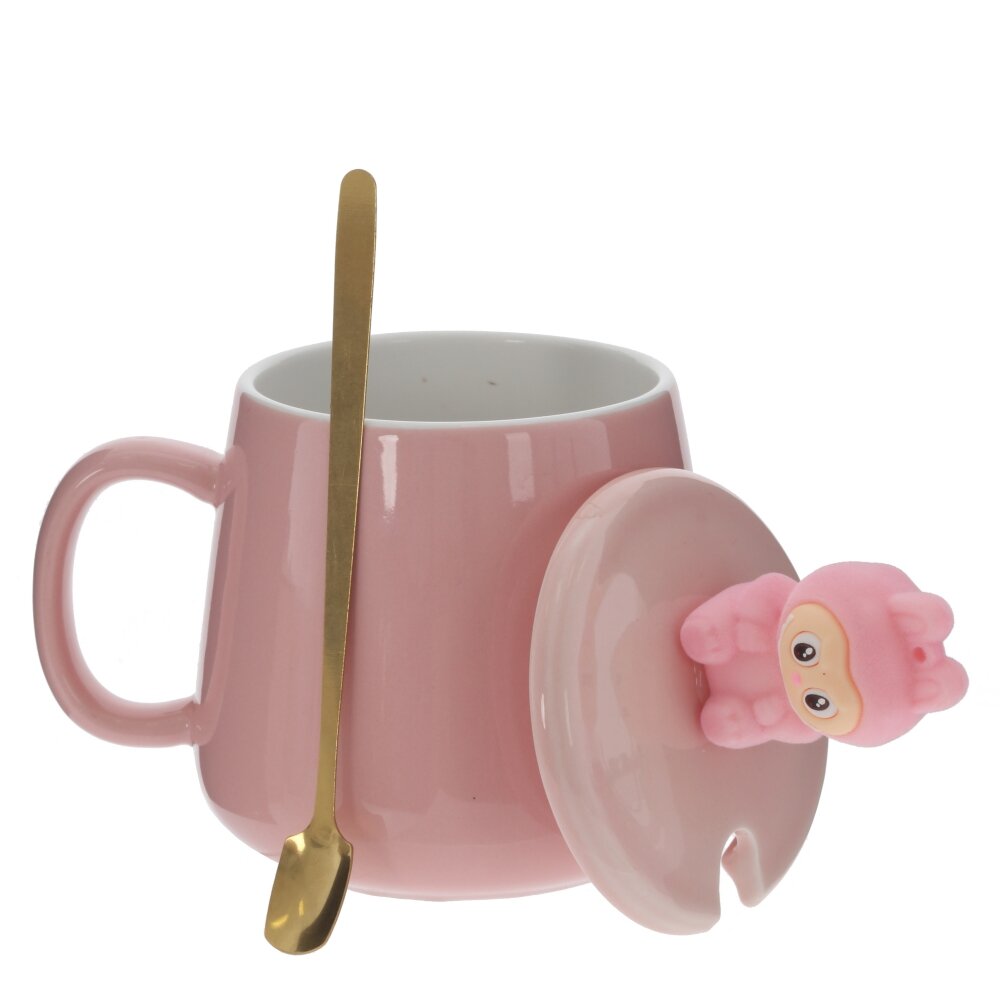 Кружка с крышкой и ложкой, 470 мл, L13,5 W10 H15 см