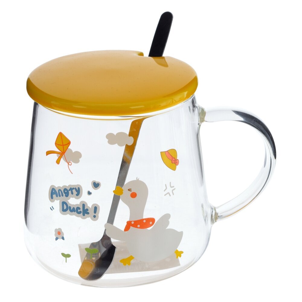 Эта удивительно милая кружка объемом 500 мл станет отличным компаньоном для вашего утреннего чая или кофе. Изготовленная из прозрачного стекла, кружка украшена прекрасным рисунком милой уточки, который добавит немного радости и игривости в вашу повседневную жизнь. Ложка из метала дополняет дизайн кружки и делает ее использование более удобным и приятным. Фарфоровая крышка поможет сохранить тепло напитка. Кружка станет отличным подарком для любителей милых аксессуаров и прекрасным дополнением к интерьеру кухни.