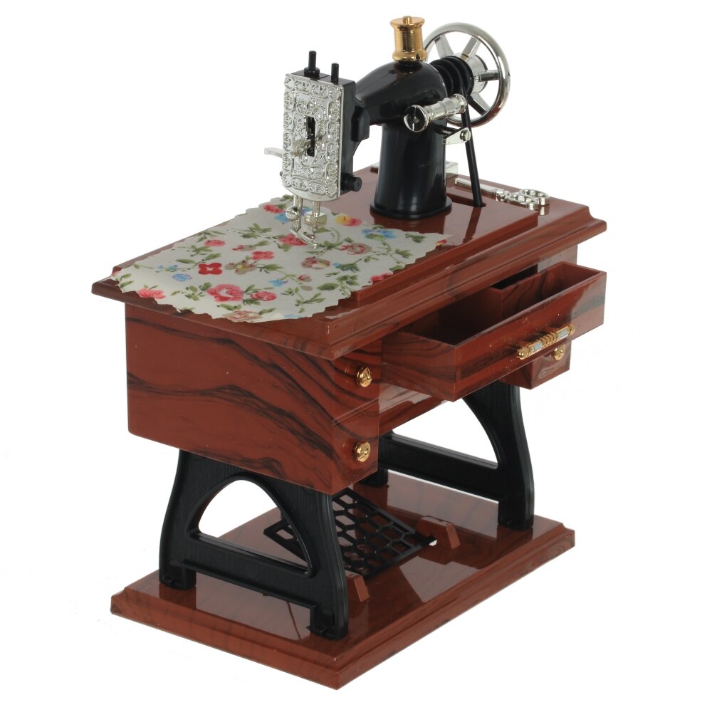 Оригинальный подарок - сувенир рукодельницам - небольшая музыкальная модель винтажной швейной машинки. При открывании ящичка , начинает играть музыка. В шкатулке можно хранить монеты, украшение и другие мелкие предметы. Работает от заводного ключа.