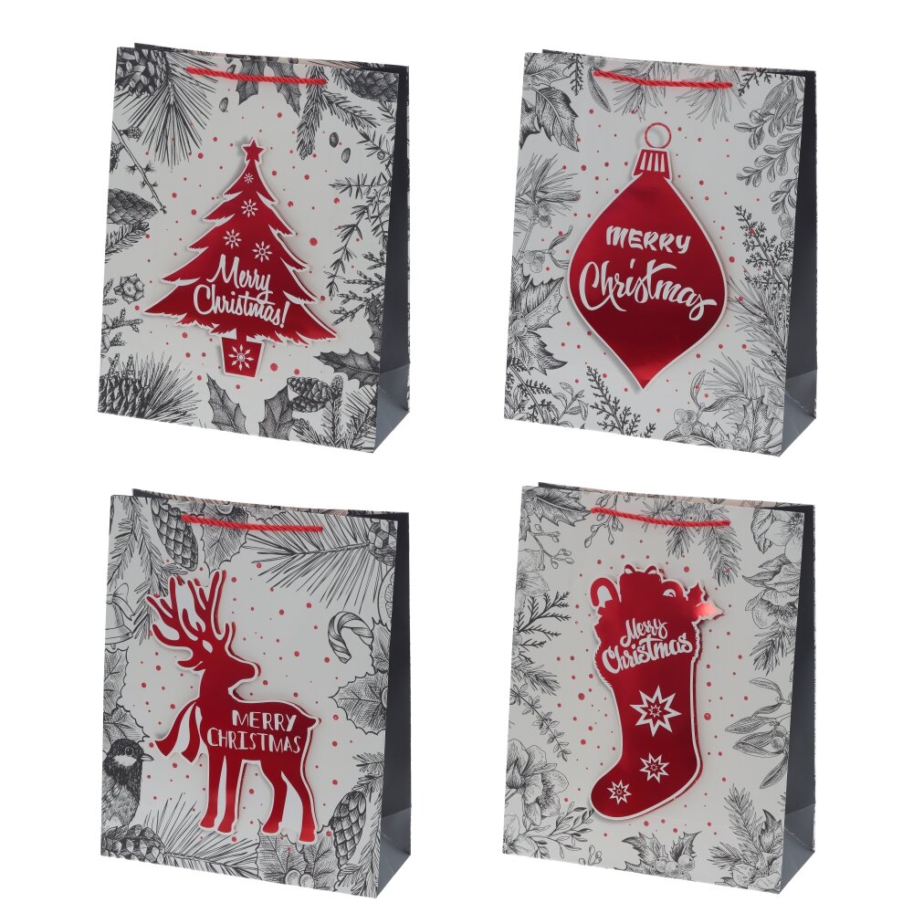 Пакет подарочный (бумага 210г/м2, блок микс 12шт), L31 W12 H40 см, 4в.