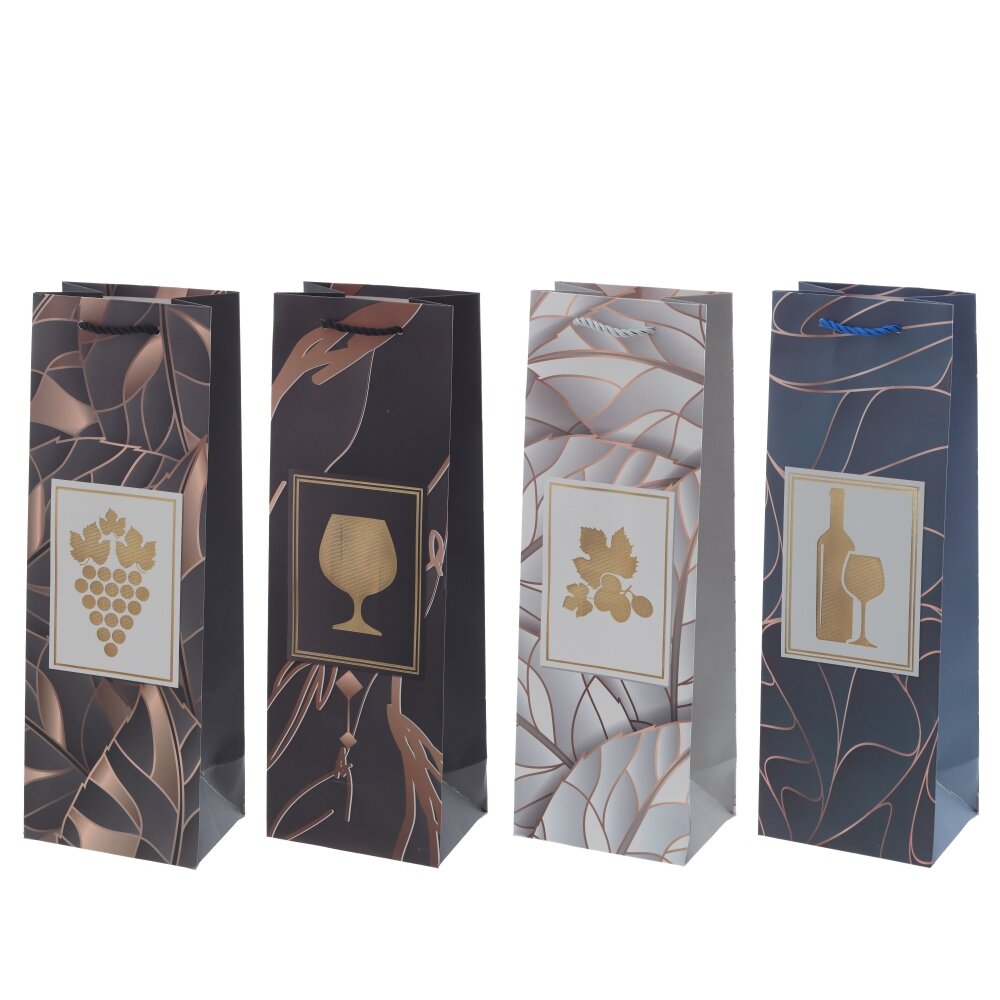 Пакет подарочный для бутылок (бумага 210г/м2, блок микс 12шт), L12 W9 H35 см, 4в.