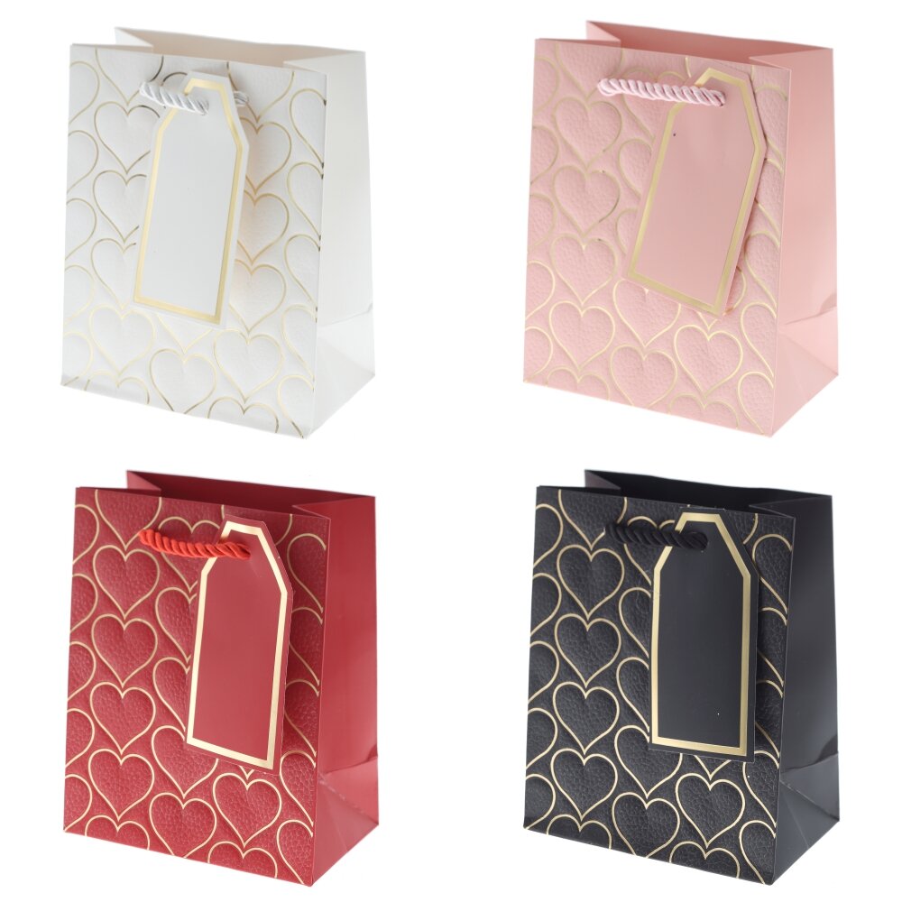 Пакет подарочный XS (бумага 210г/м2, блок 12шт), L12 W7 H15 см, 4в.
