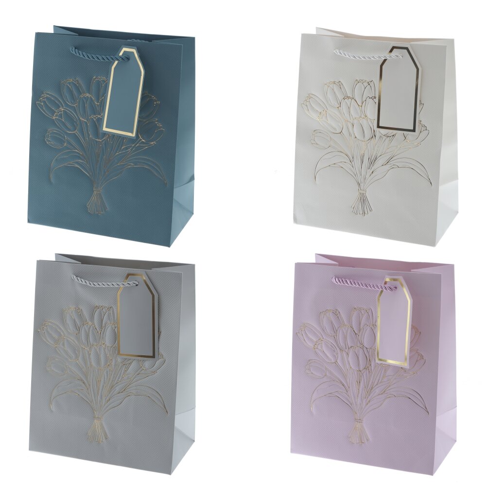 Пакет подарочный S (бумага 210г/м2, блок 12шт), L18 W10 H23 см, 4в.