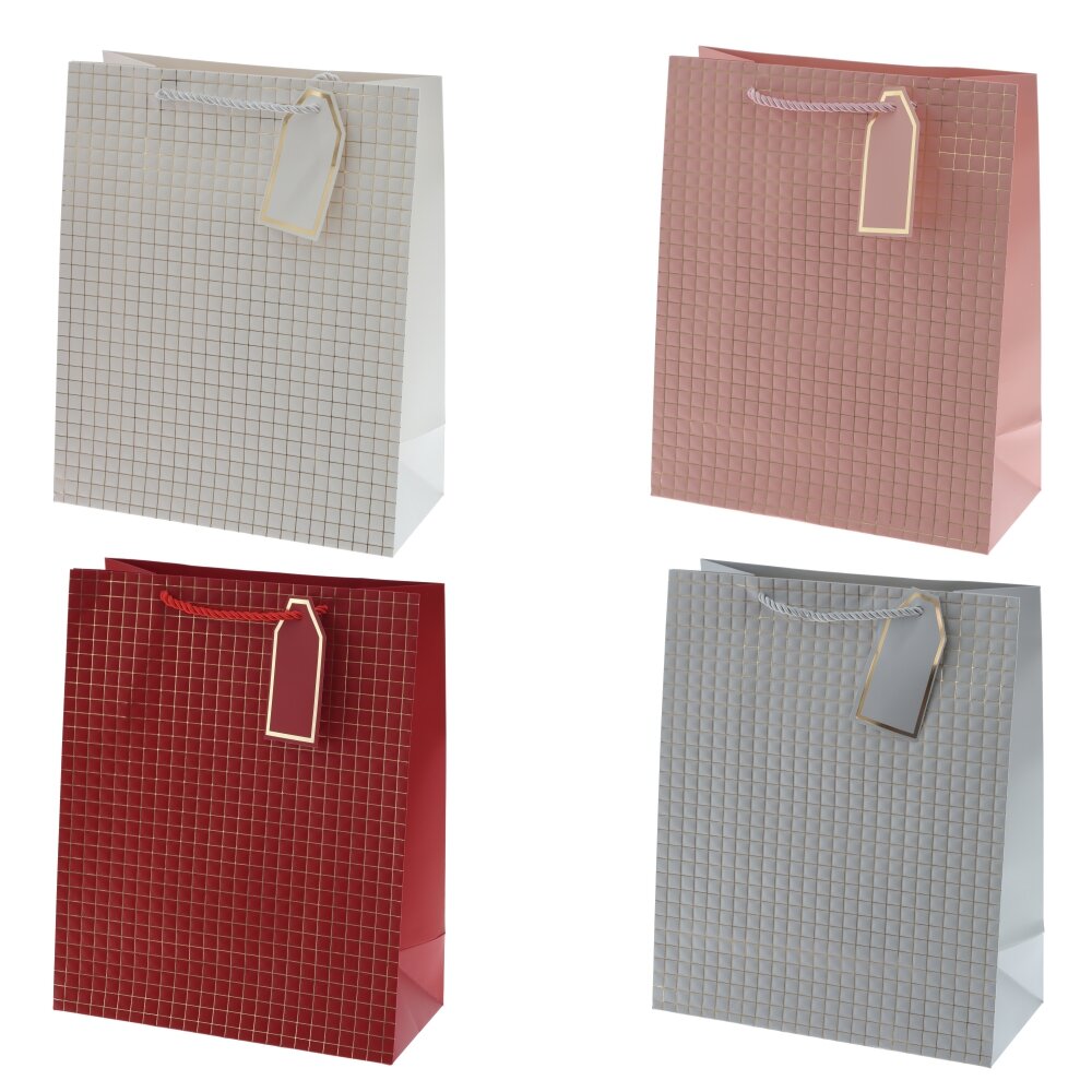 Пакет подарочный M (бумага 210г/м2, блок 12шт), L26 W12 H32 см, 4в.