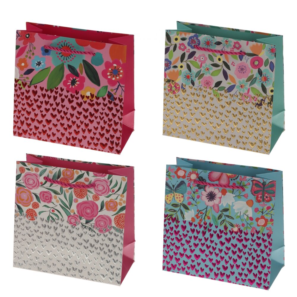 Пакет подарочный (бумага 210г/м2, блок микс 12шт), L15 W7 H14 см, 4в.