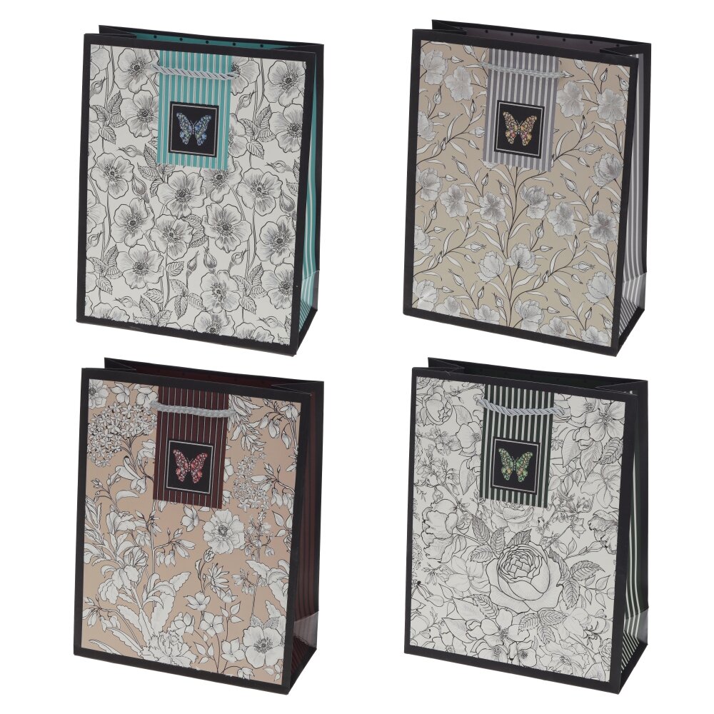 Пакет подарочный (бумага 210г/м2, блок микс 12шт), L18 W8 H23 см, 4в.