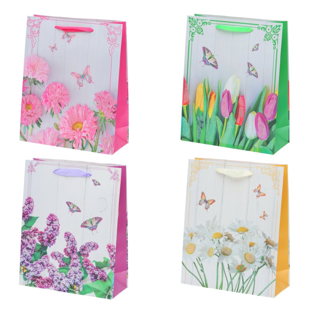 Пакет подарочный M (бумага 210г/м2, блок микс12шт), L26 W10 H32 см, 4в.