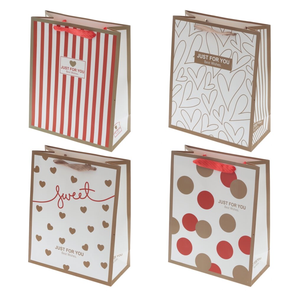 Пакет подарочный M (бумага 230г/м2, блок микс 12шт), L26 W10 H32 см, 4в.