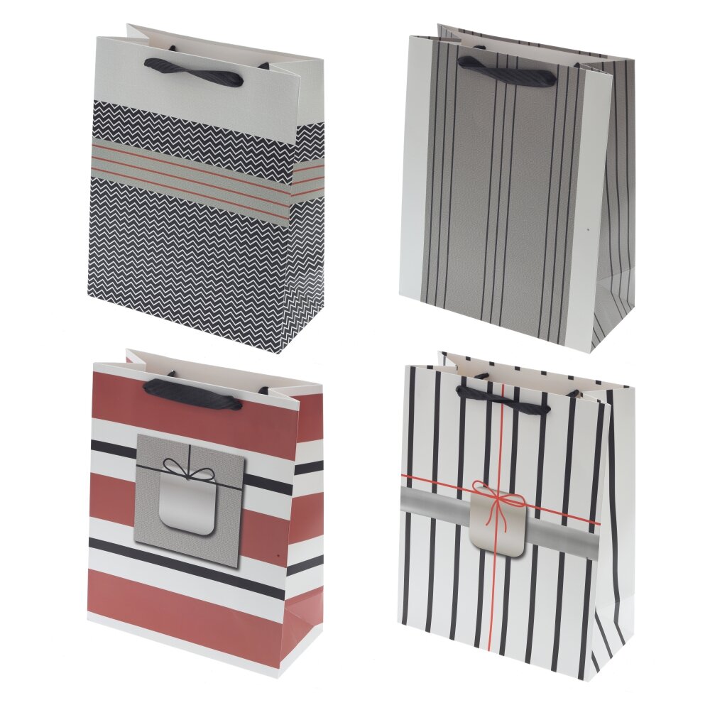 Пакет подарочный M (бумага 230г/м2, блок микс 12шт), L29 W12 H32 см, 4в.
