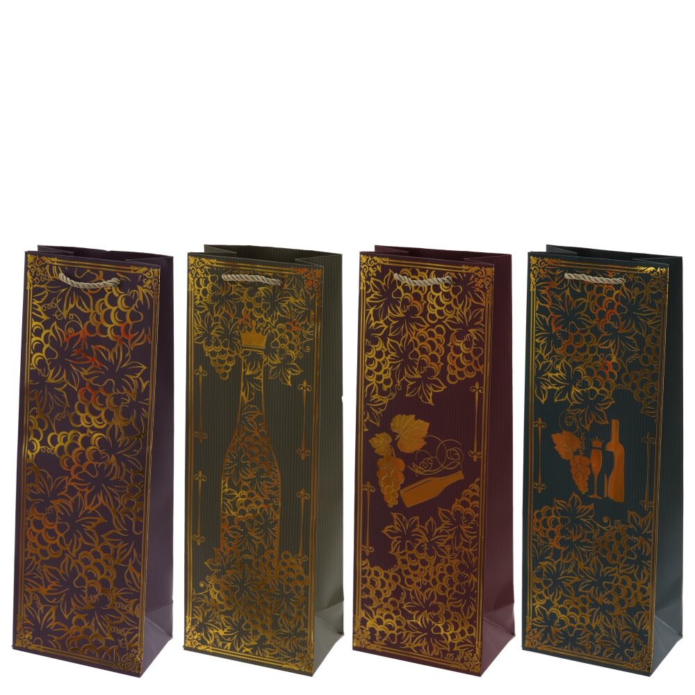 Пакет подарочный для бутылок (бумага 210г/м2, блок 12шт), L13 W8,5 H36 см, 4в.