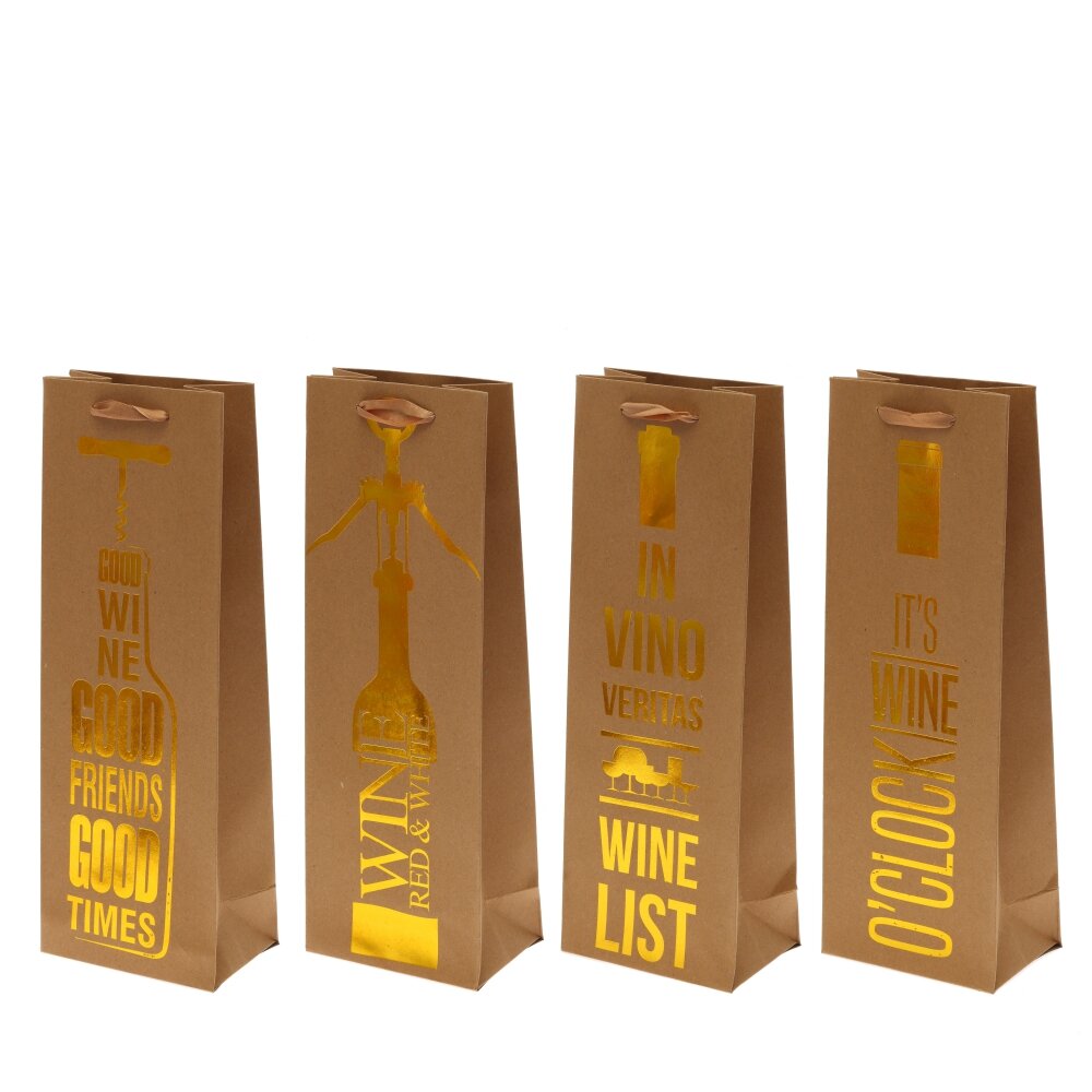 Пакет подарочный для бутылок (бумага 300г/м2, блок 12шт), L12,5 W8,5 H36 см, 4в.
