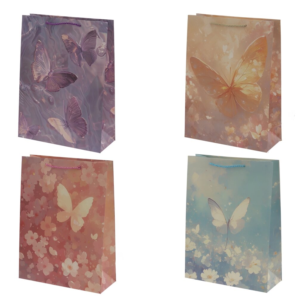 Пакет подарочный L (бумага 210г/м2, блок 12шт), L30 W12 H40 см, 4в.