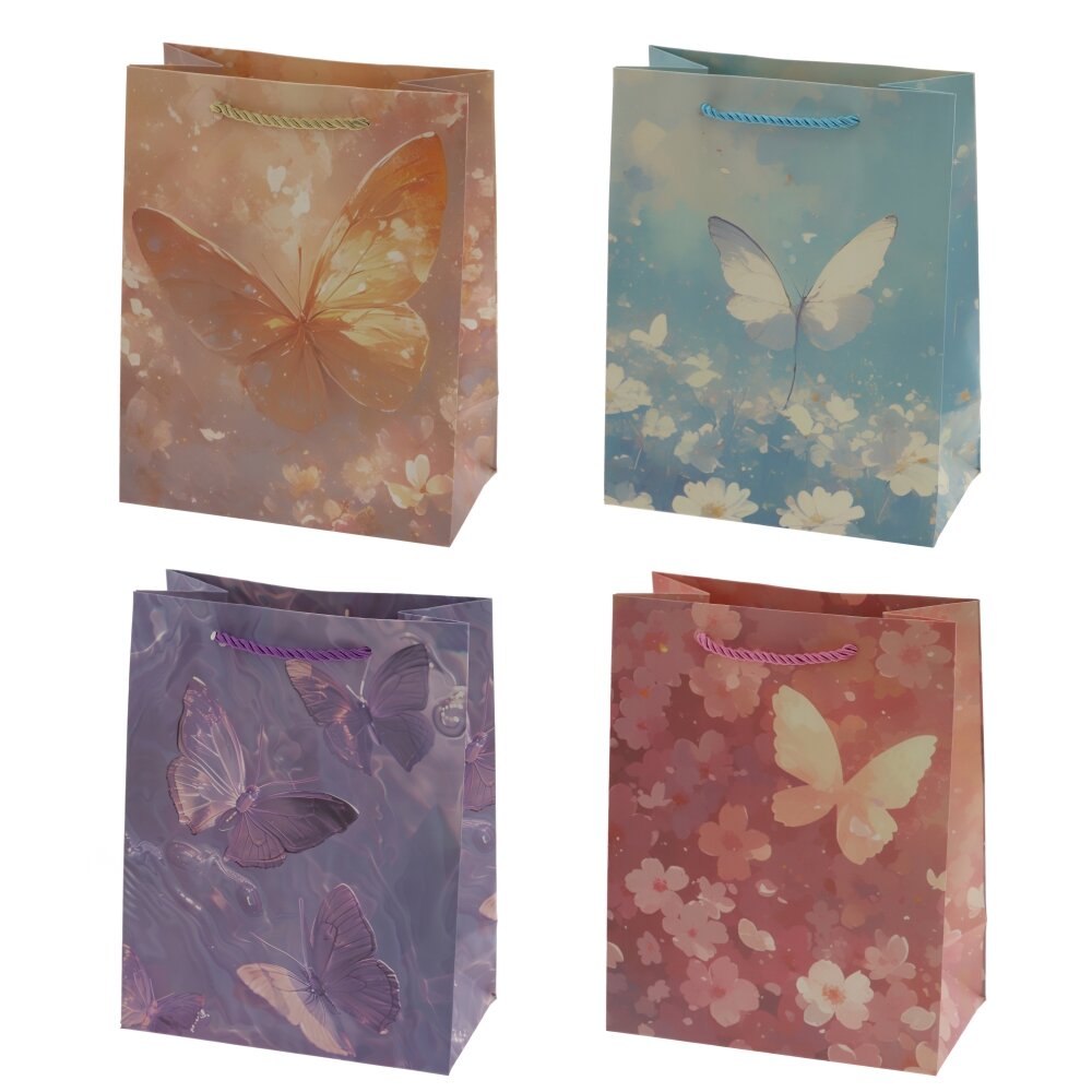 Пакет подарочный S (бумага 210г/м2, блок 12шт), L18 W10 H23 см, 4в.