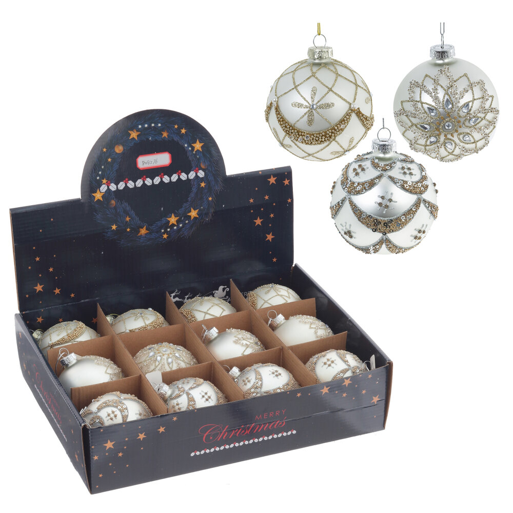 Набор из 12шт Украшение новогоднее "Шар", D 8 см, L35 W25 H9 см