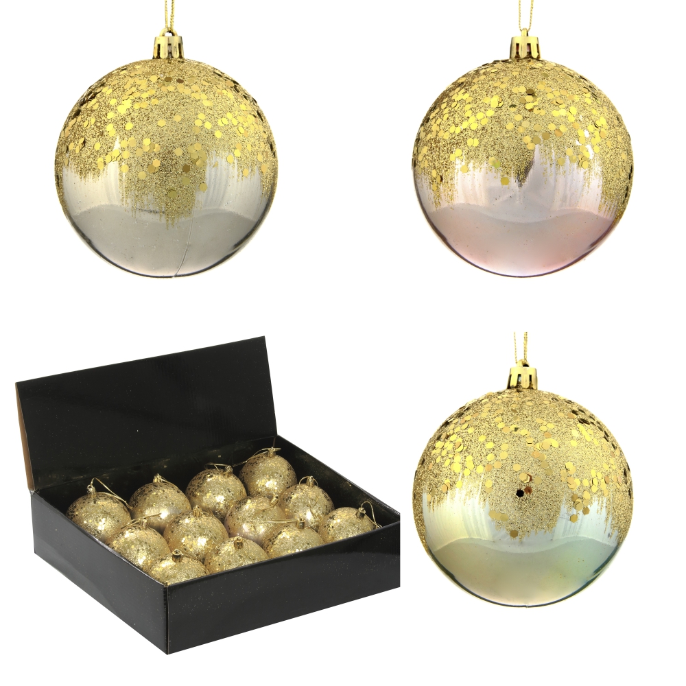 Набор из 12шт Украшение новогоднее Шар "Золотое напыление", D10 см, L44 W33 H11 см