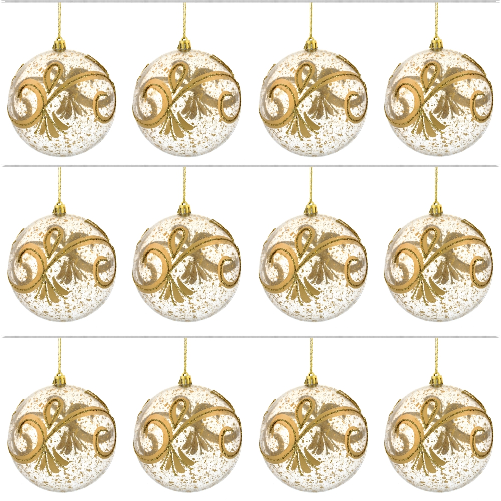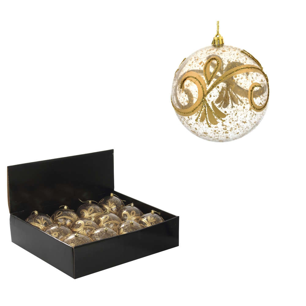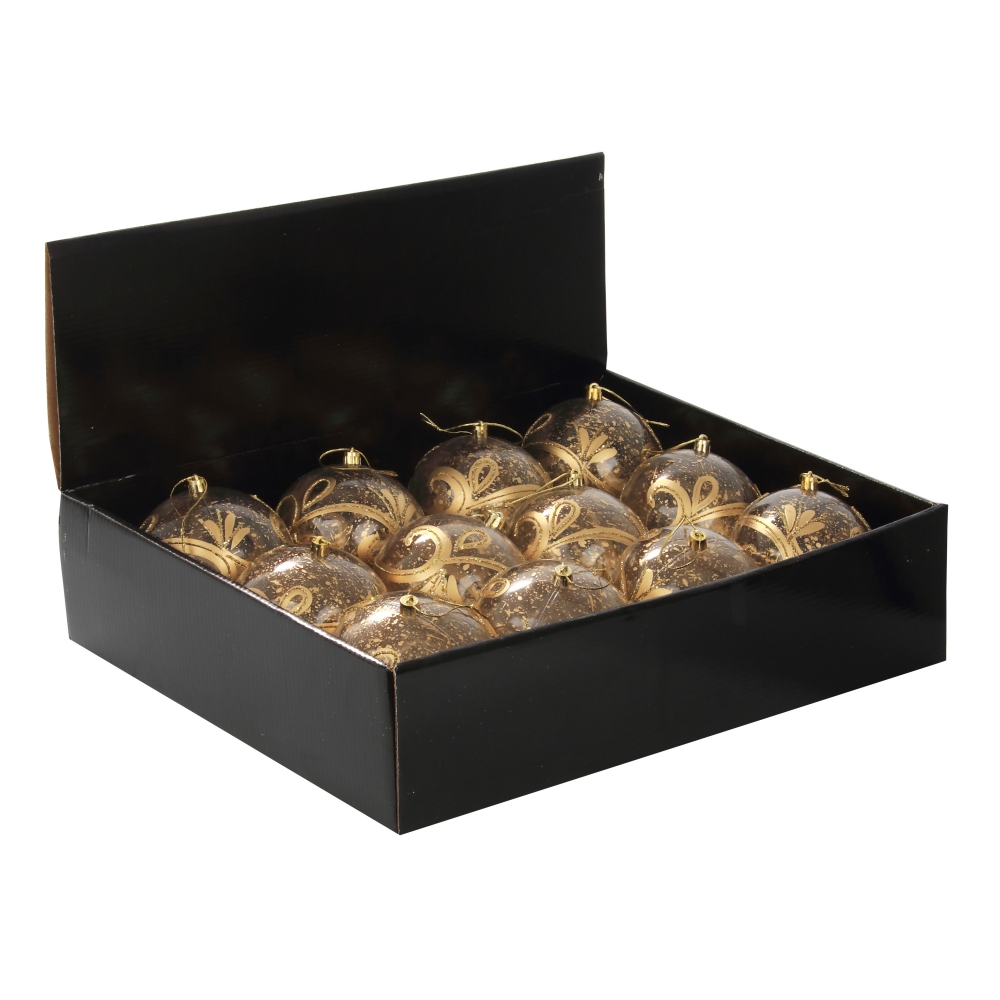 Набор из 12шт Украшение новогоднее Шар "Золотое напыление", D10 см, L44 W33 H11 см