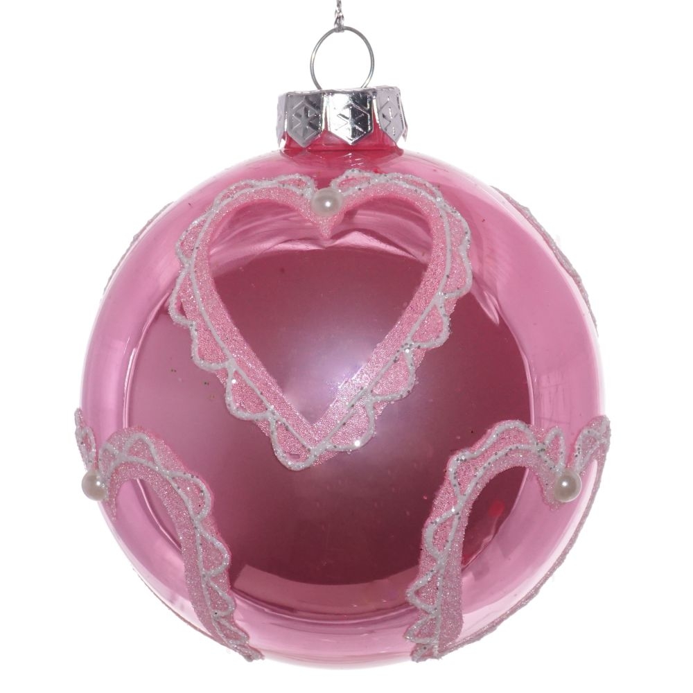 Украшение новогоднее Шар "Розовое сердце", D 8 см, L8 W8 H8 см