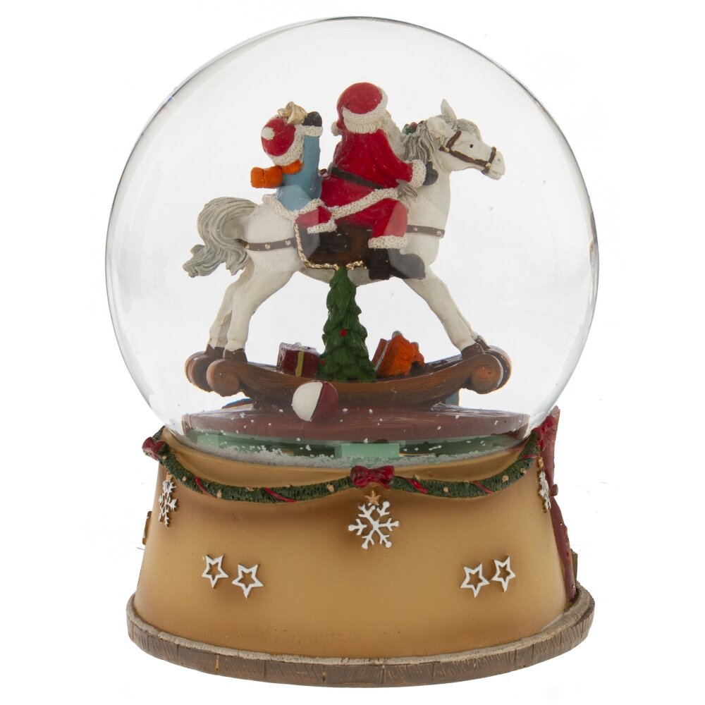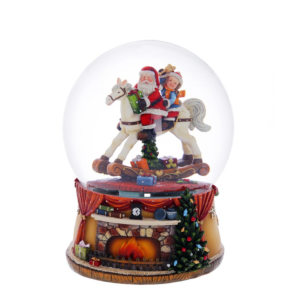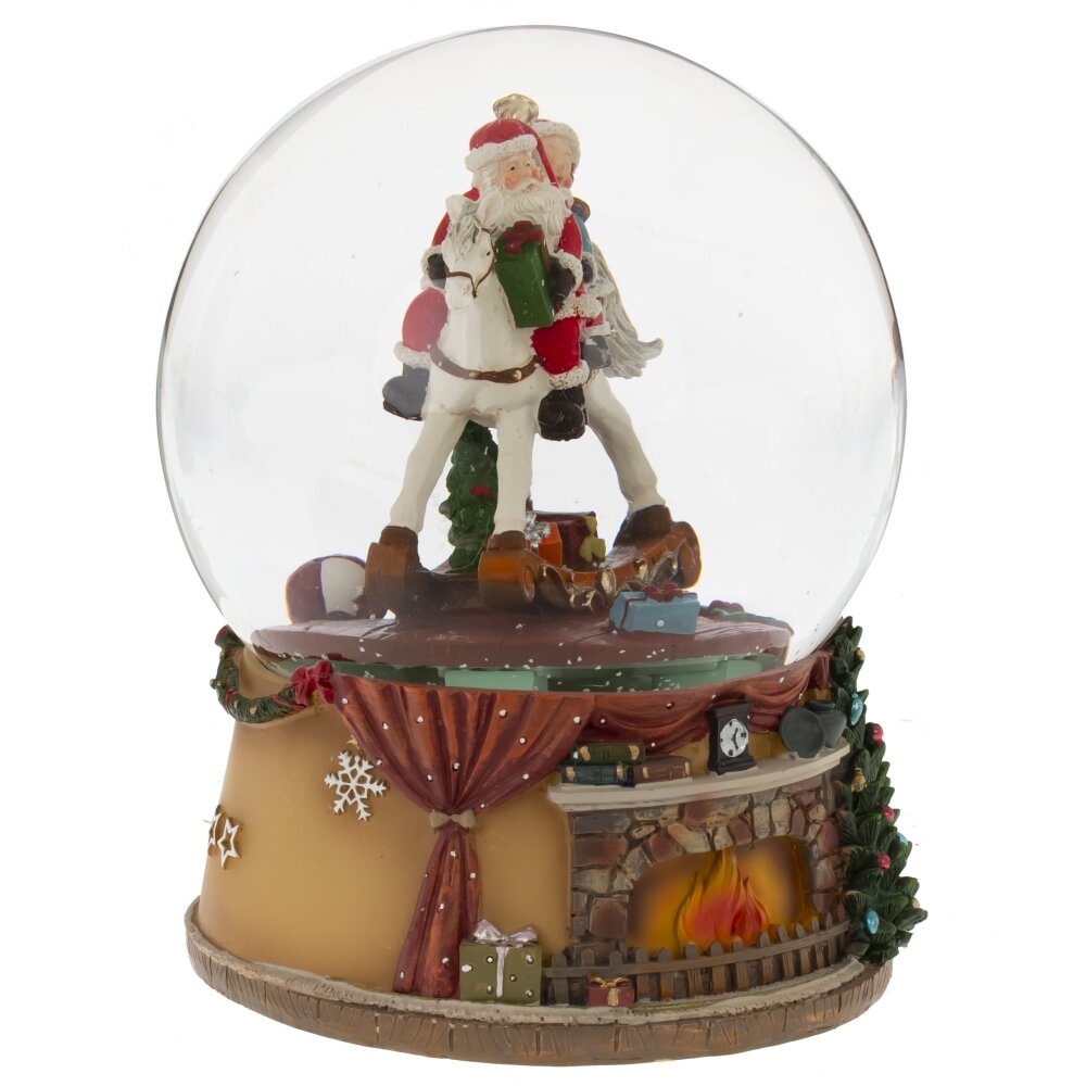 Фигурка декор в стекл шаре "Дед Мороз на лошадке" (муз и вьюга, 3xAAA н/п), D 15 см, L14 W14 H19 см