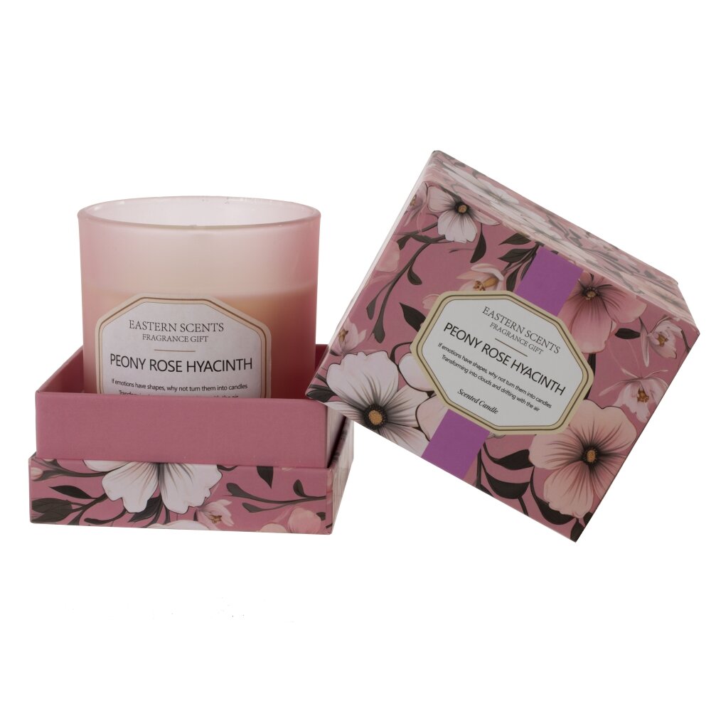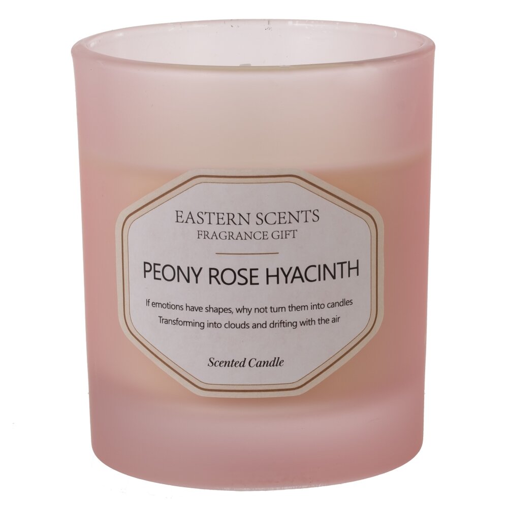 Ароматическая свеча в матовом стеклянном стакане нежно-розового цвета. Диаметр 7,5 см. Наполнитель — высококачественный парафин; емкость — прочное стекло с аккуратной этикеткой Eastern Scents. Аромат композиционный: пион, роза и гиацинт — мягкий цветочный букет, создающий атмосферу уюта и легкой романтики в спальне, гостиной или ванной. Лаконичный дизайн гармонично впишется в современный интерьер и станет приятным подарком. Рекомендуется подрезать фитиль до 5 мм, устанавливать на термостойкую поверхность и не оставлять без присмотра.