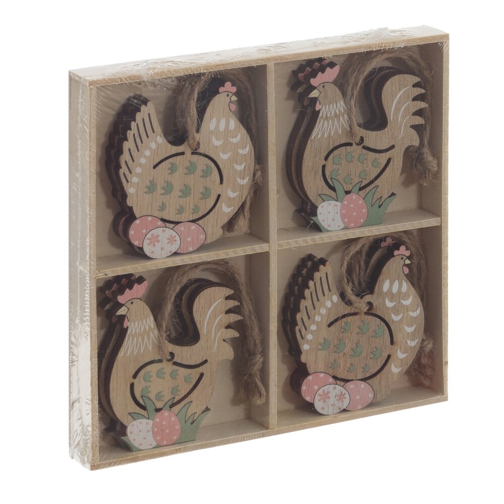 Набор из 8-ми изделий декоративных подвесных "Курица/Петух" (4,5*0,5*6), L12,5 W12,5 H1,5 см
